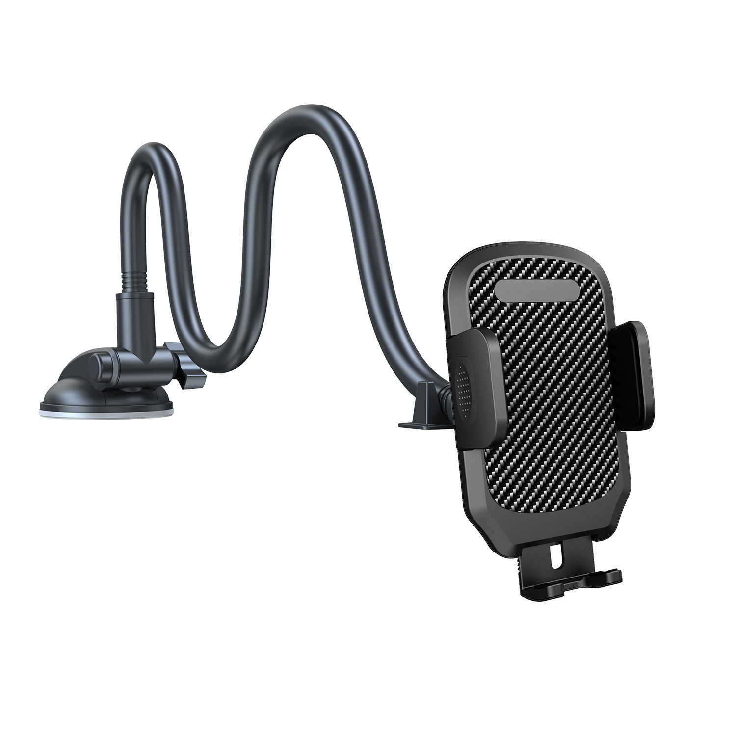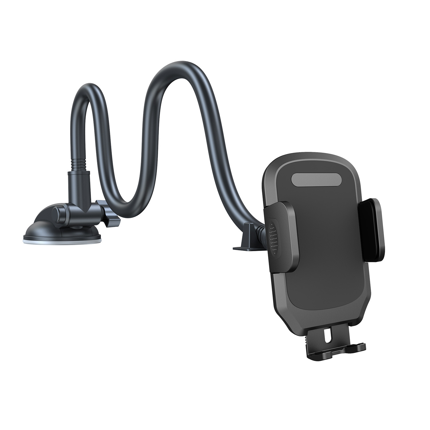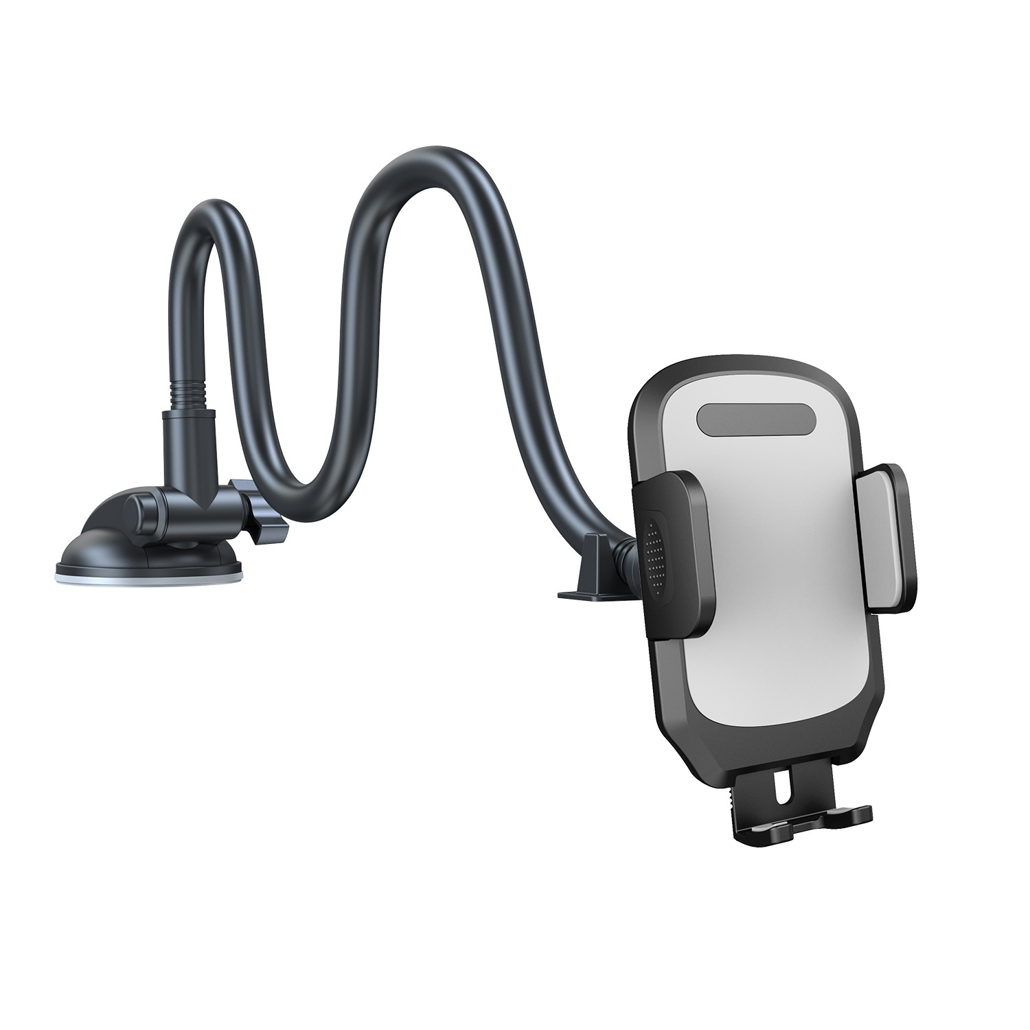产品功能:手机夹夹臂尺寸最大可张开至110mm,适合市面上大屏幕手机以及厚大的手机壳,脚拖可下拉调整灵活,吸盘TPU灌胶,适合仪表台和挡风玻璃使用,铝合金加粗7.0mm直径,预防在驾驶中颠簸带来的振动。铝合金可自由弯曲调节至符合驾驶角度,下探不遮挡视线安全驾驶。