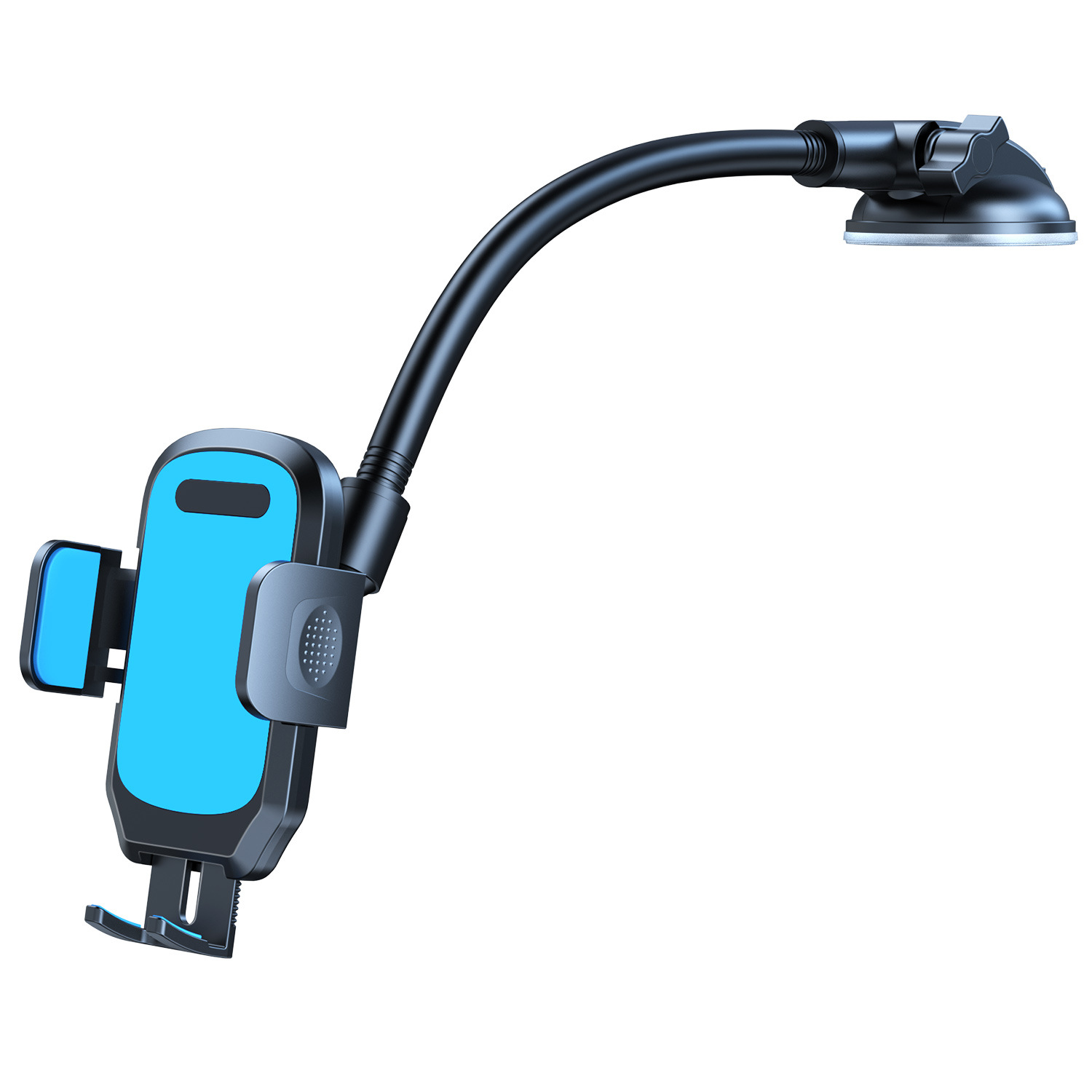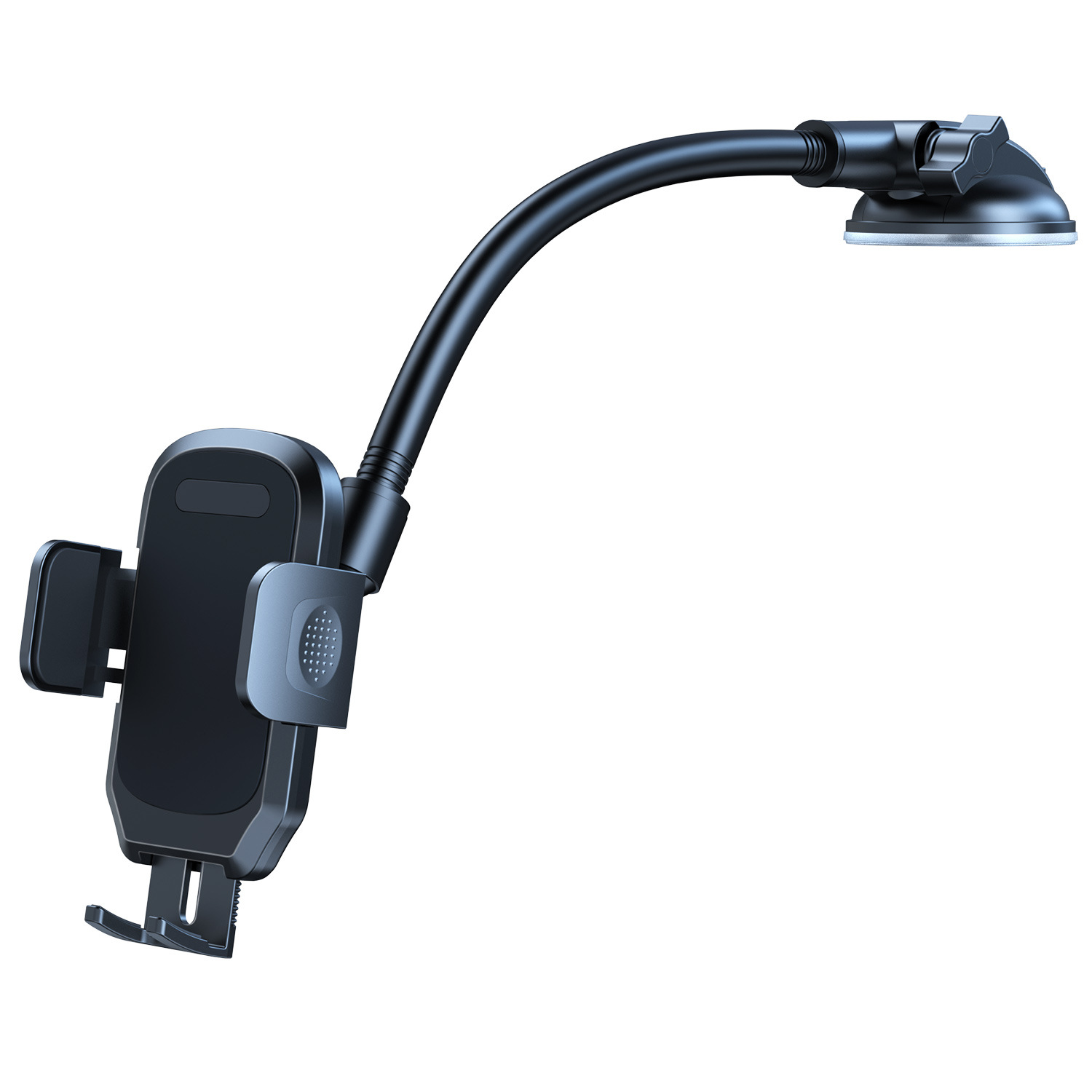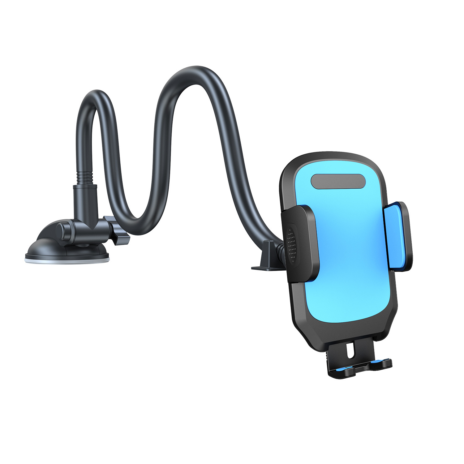 产品功能:手机夹夹臂尺寸最大可张开至110mm,适合市面上大屏幕手机以及厚大的手机壳,脚拖可下拉调整灵活,吸盘TPU灌胶,适合仪表台和挡风玻璃使用,铝合金加粗7.0mm直径,预防在驾驶中颠簸带来的振动。铝合金可自由弯曲调节至符合驾驶角度,下探不遮挡视线安全驾驶。