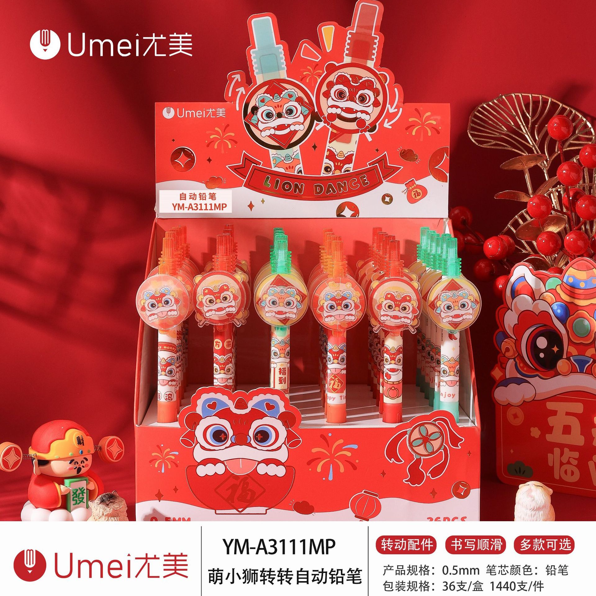 • 3111MP 귀여운 작은 사자 자동 연필 [36개/상자]