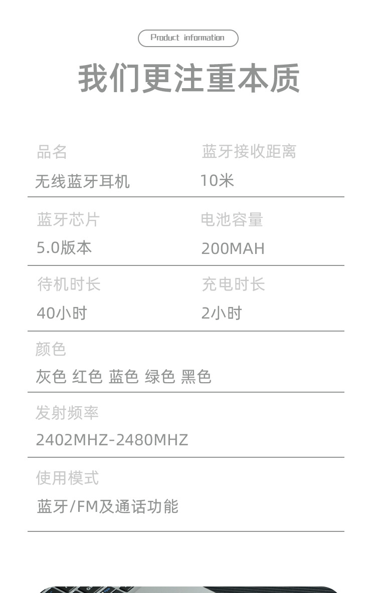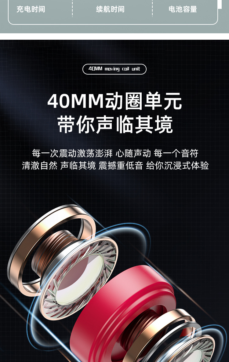 耳机参数;蓝牙版本;杰理5.0 喇叭;40mm碳磁 电磁容量;200ma