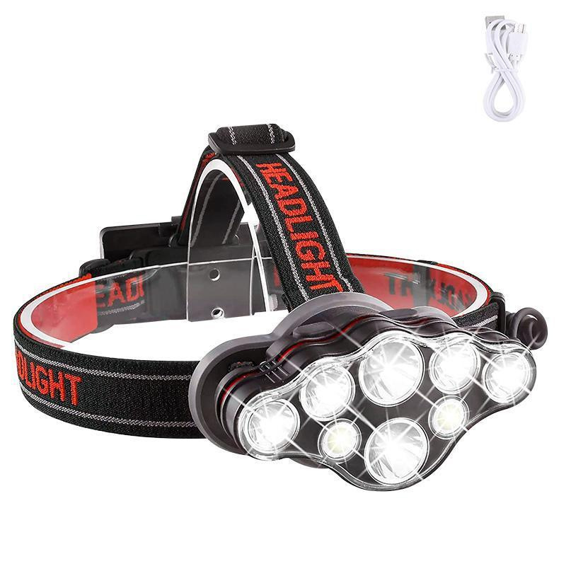 • 8 LED 헤드램프 블랙/레드 (컬러 박스 포장, USB 케이블 포함) 배터리 미포함