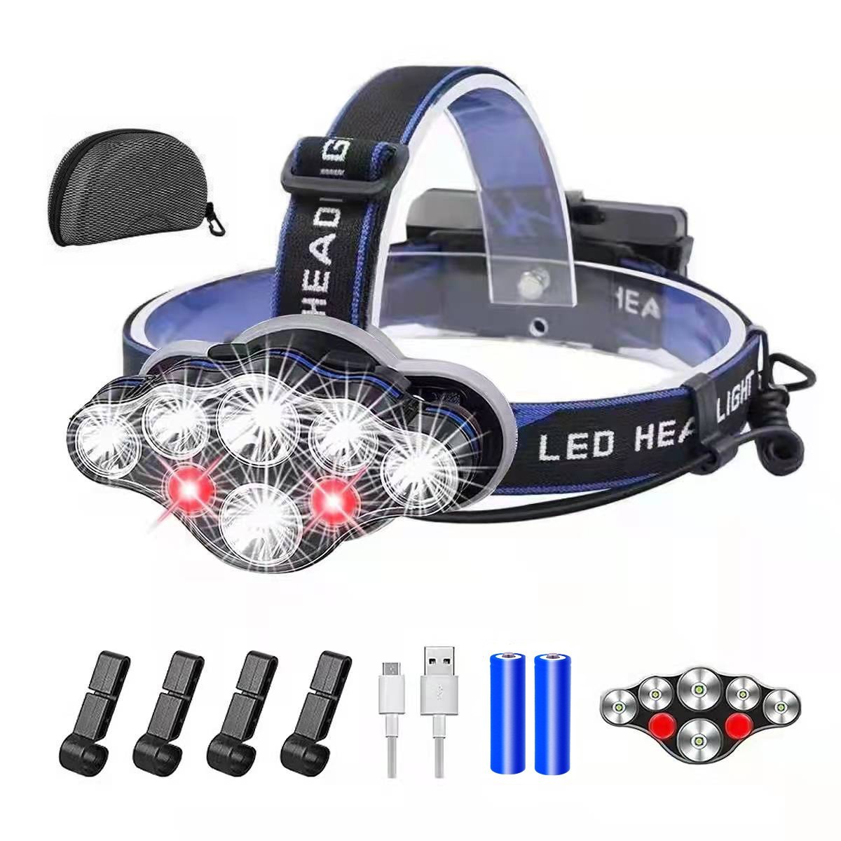 • 8LED 헤드램프 레드 (컬러 박스 포장, USB 케이블 + 18650 리튬 배터리 2개 포함)