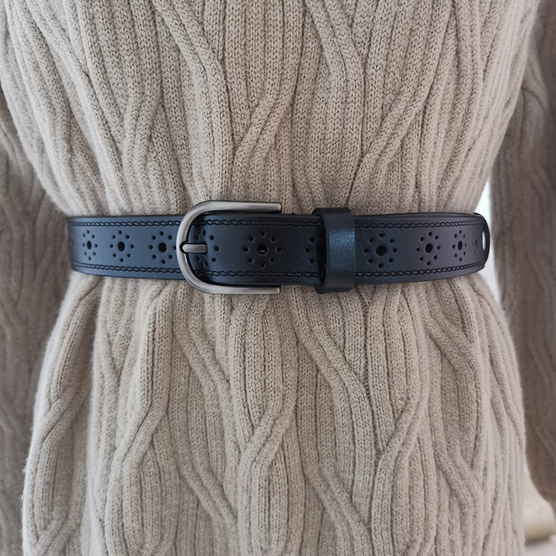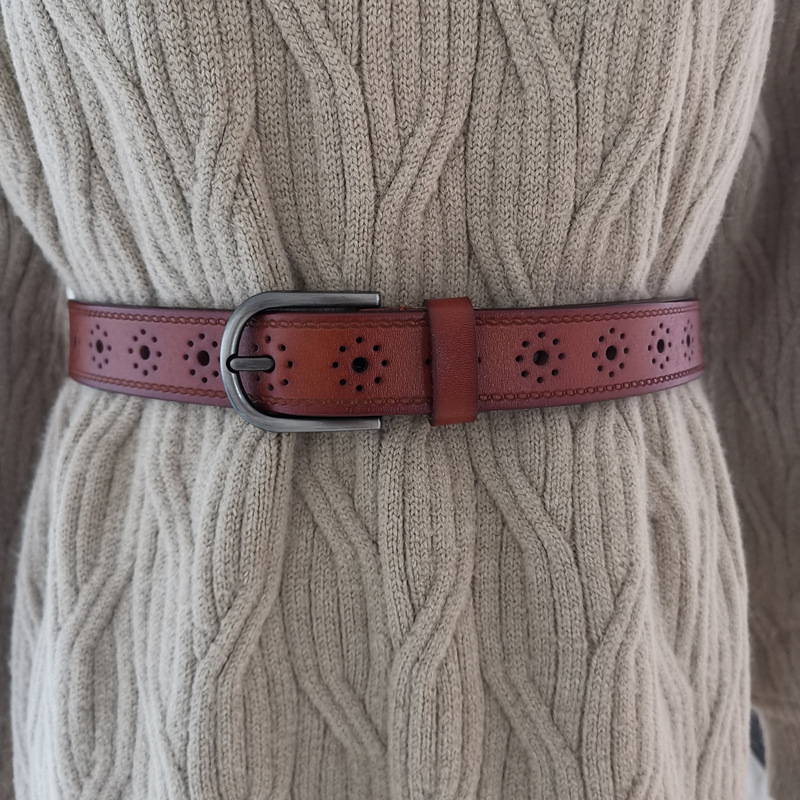 새로운 여성 가죽 벨트 한국 스타일 다목적 중공 순수 소가죽 핀 버클 벨트 여성의 넓은 장식 소 벨트 도매스토어 가기