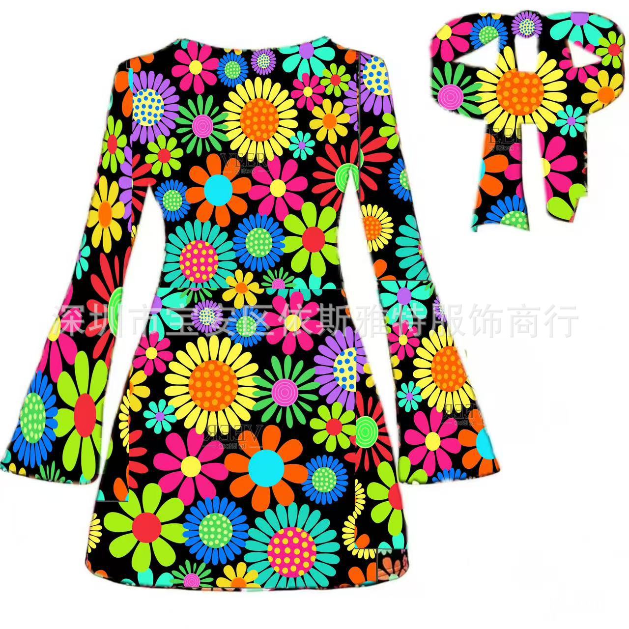 아마존 할로윈 70 년대 히피 디스코 레이디 · 원피스 플러스 히잡