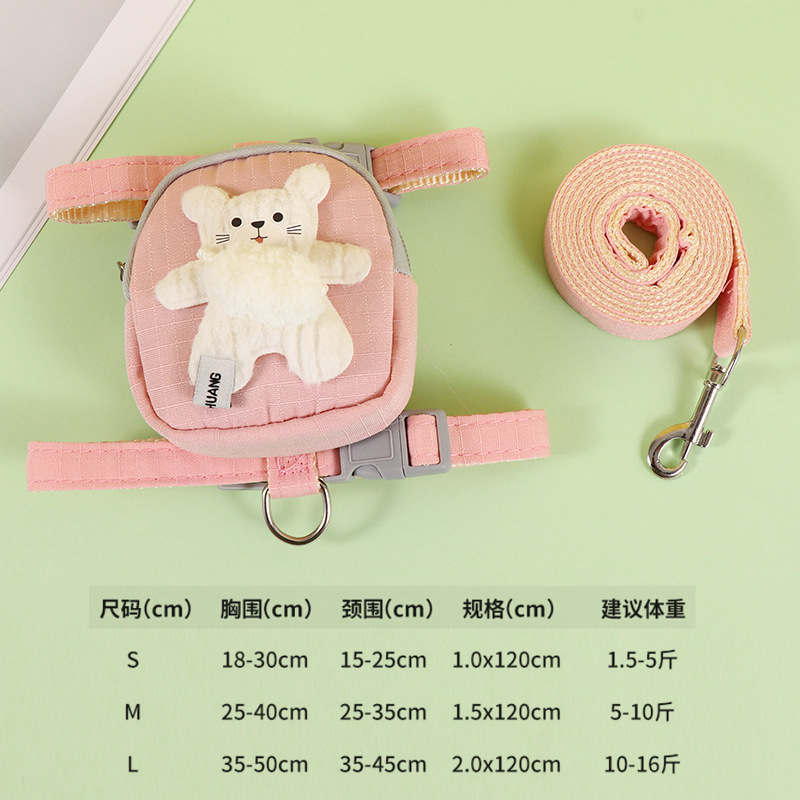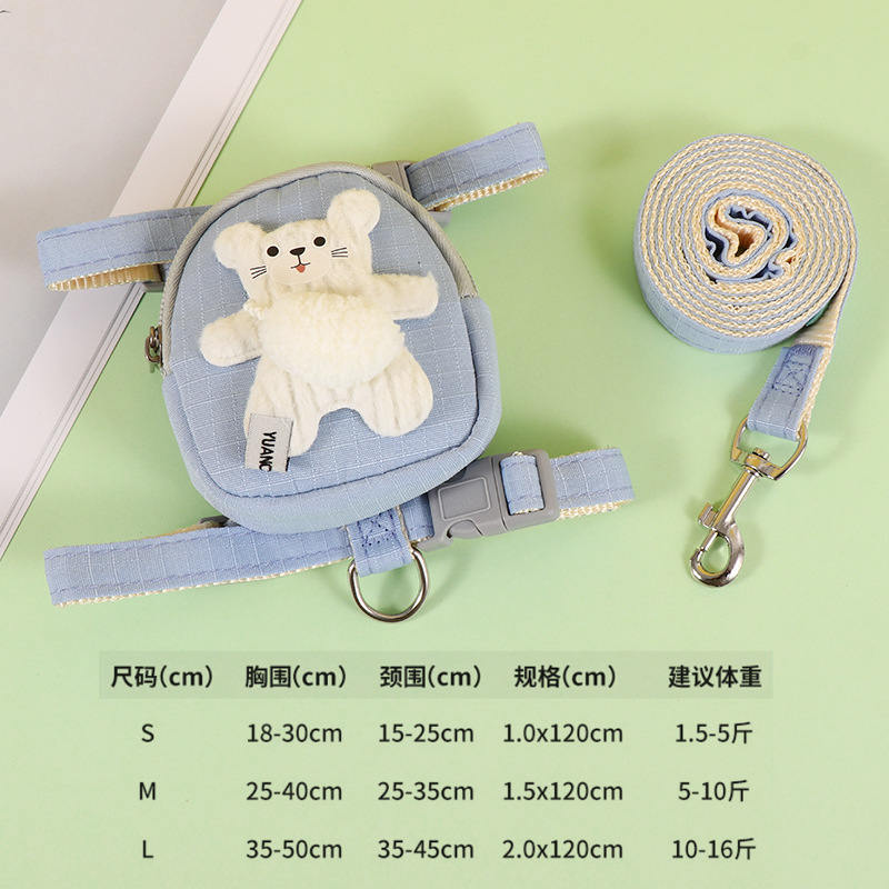 개 가죽 끈 애완 동물 배낭 테디 베어 가죽 끈 고양이 개 가슴 끈 개 체인 개 가죽 끈 고리