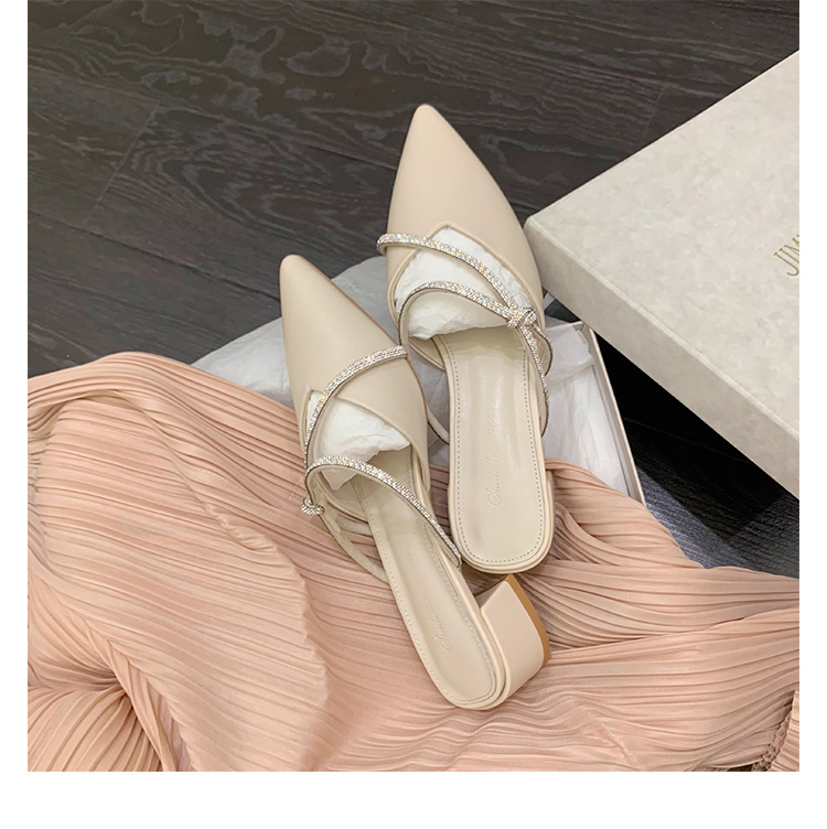 포도 엄마 새로운 프랑스 스타일 우아한 뾰족한 발가락 샌들 다이아몬드 스트랩 슬립온 두꺼운 굽 하프 슬리퍼 여성용 Miele 아우터 샌들스토어 가기