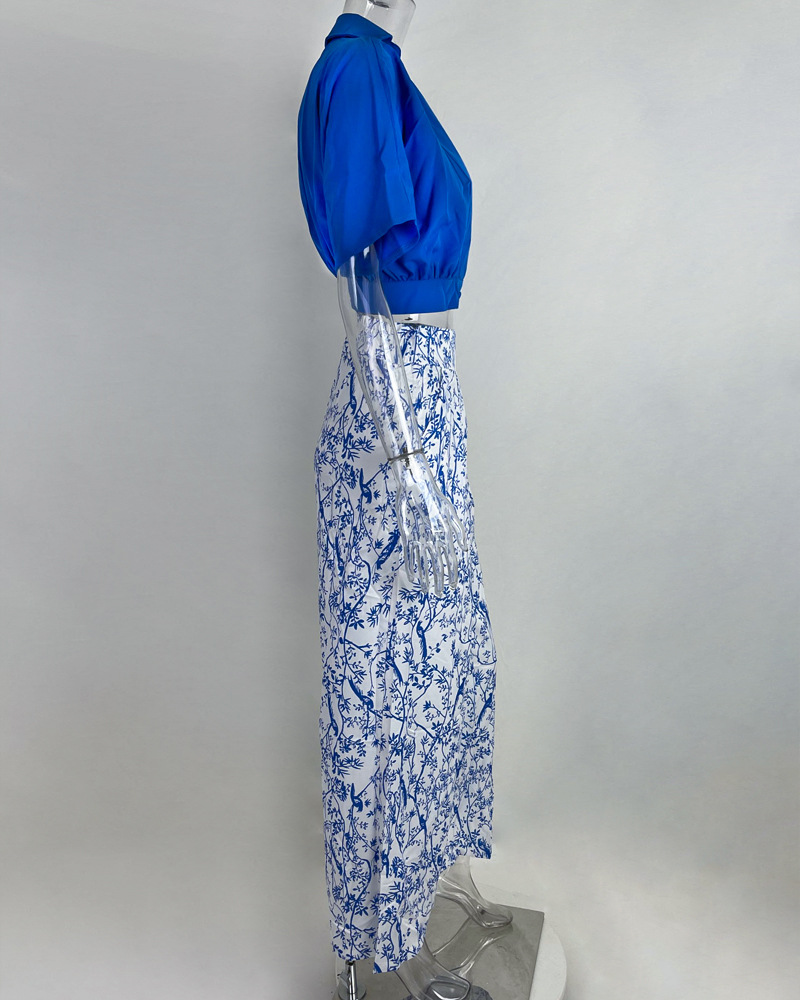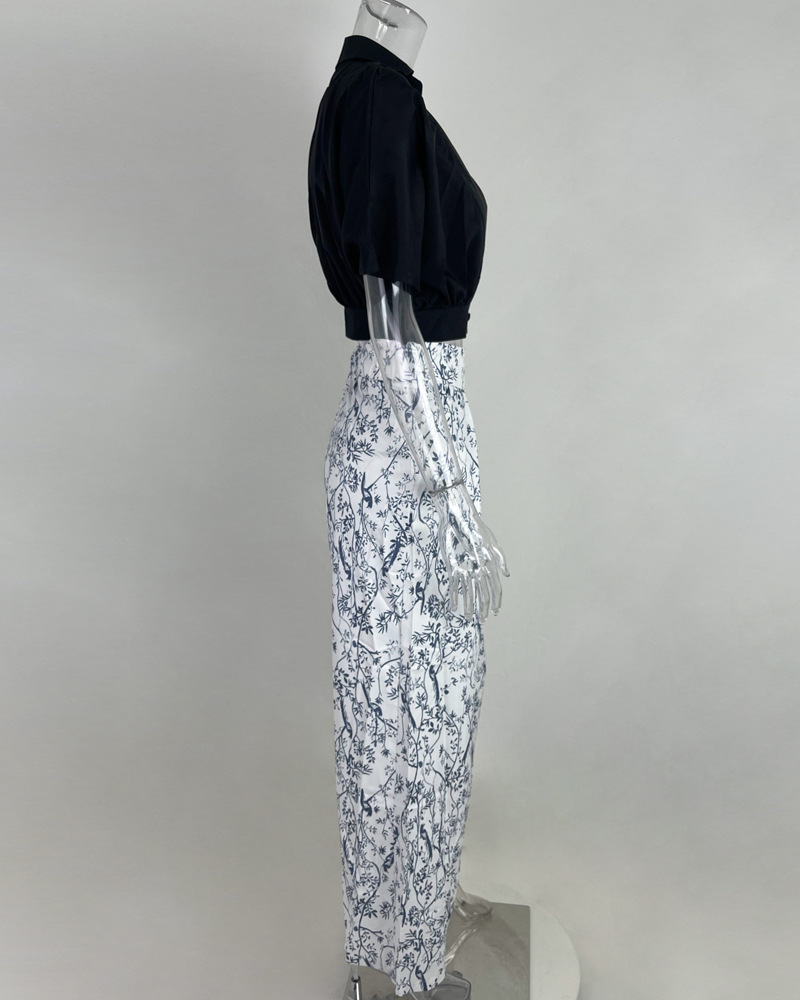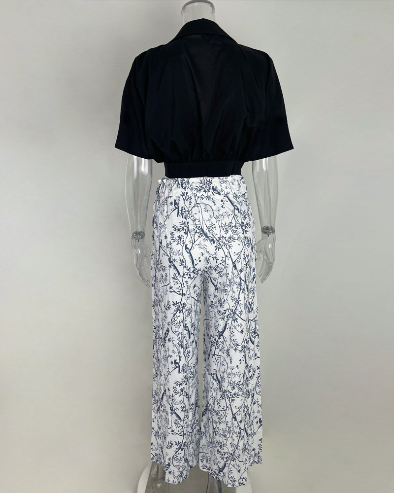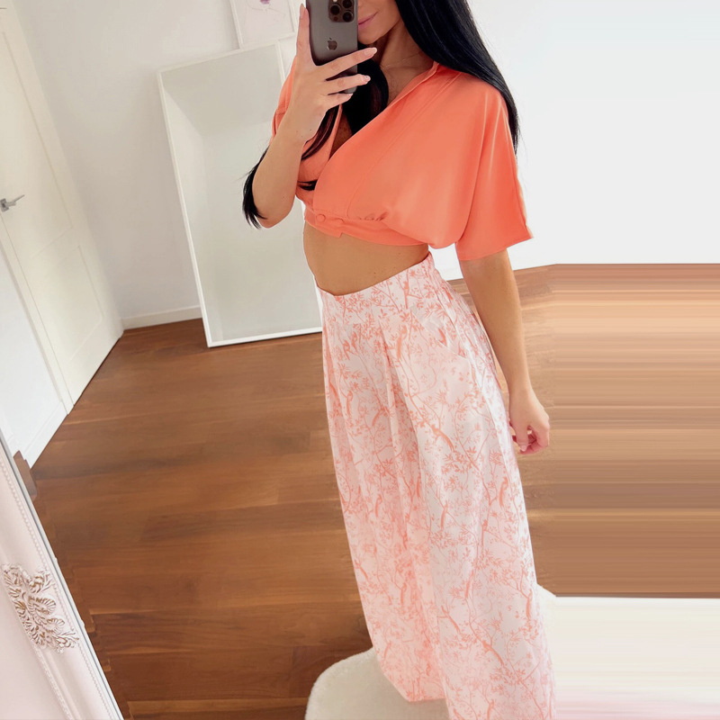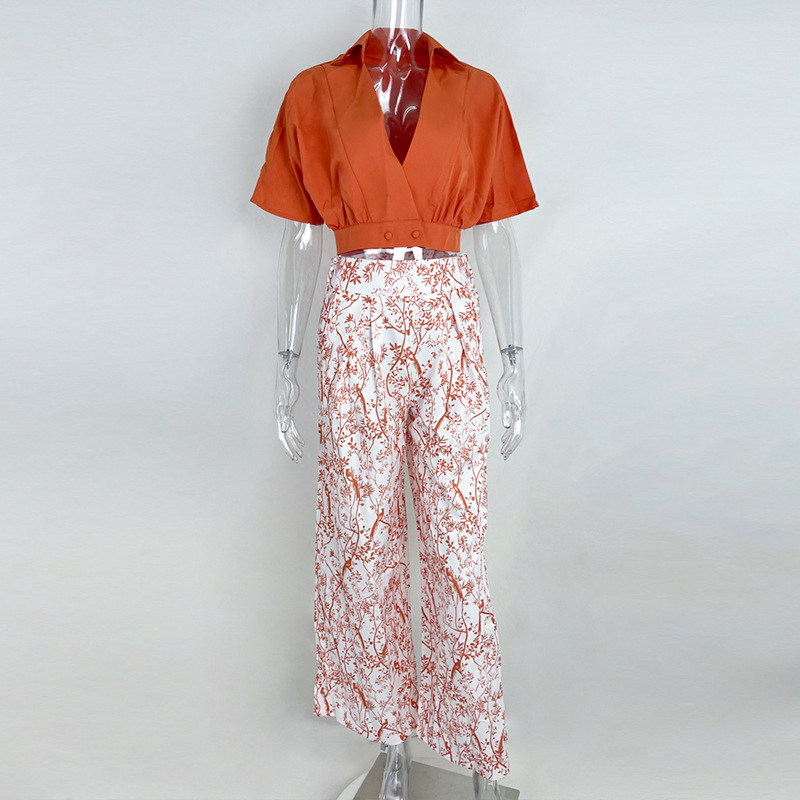 2026년 신상 봄 여성복, 유럽 및 미국 스타일 셔츠 상의 세트, V넥 프린트 와이드 팬츠 패션 세트