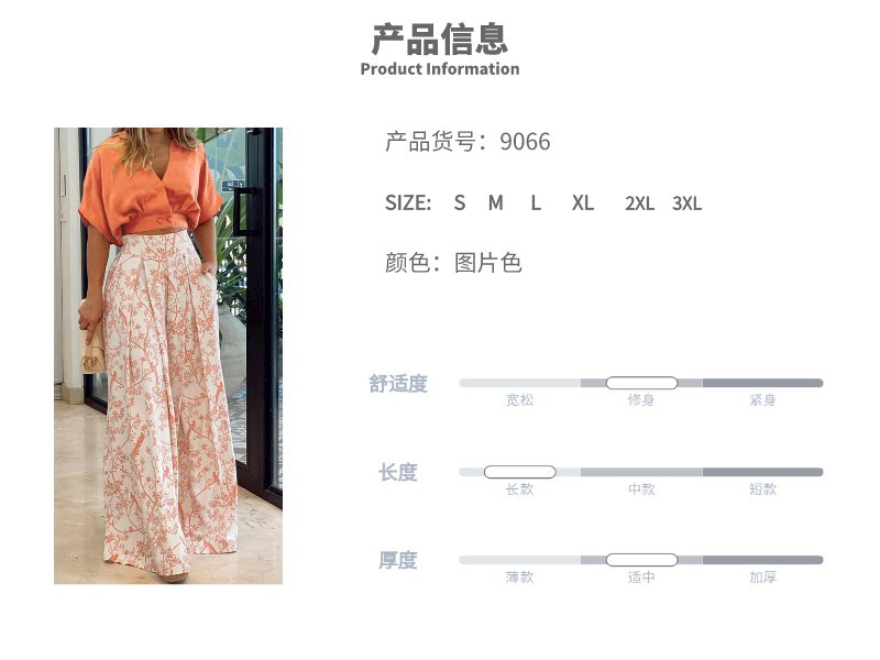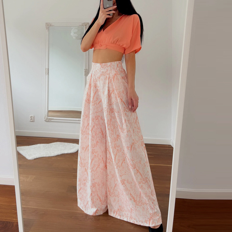 2026년 신상 봄 여성복, 유럽 및 미국 스타일 셔츠 상의 세트, V넥 프린트 와이드 팬츠 패션 세트스토어 가기