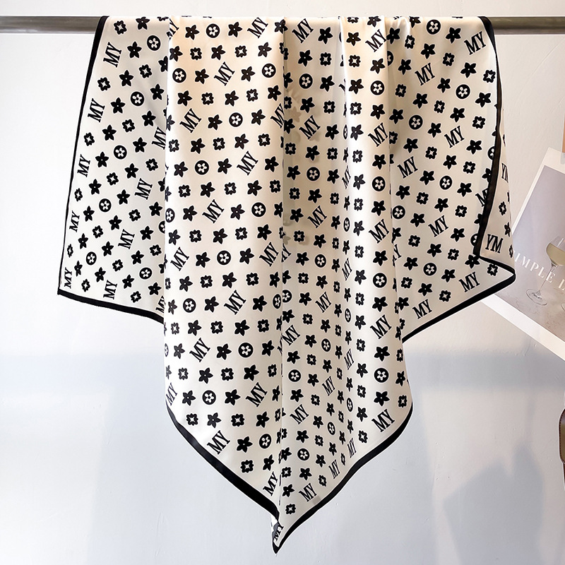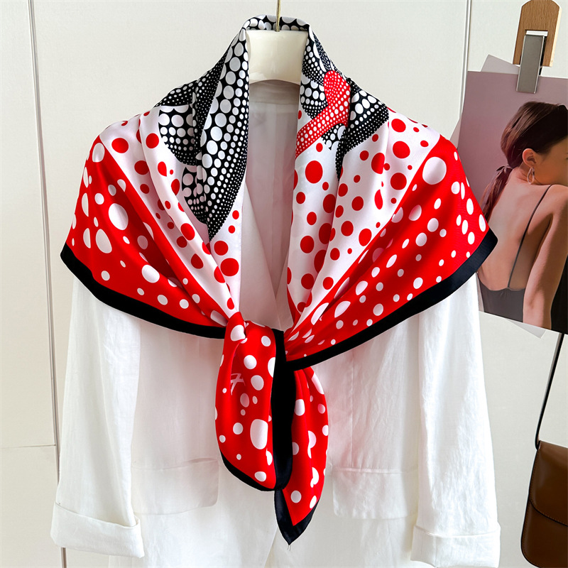 봄과 여름 머리 스카프 인쇄 능 직물 대형 사각형 스카프 작은 향기로운 스타일 실크 스카프 여성 안티 태양 스카프 장식 스카프 목도리 90cm