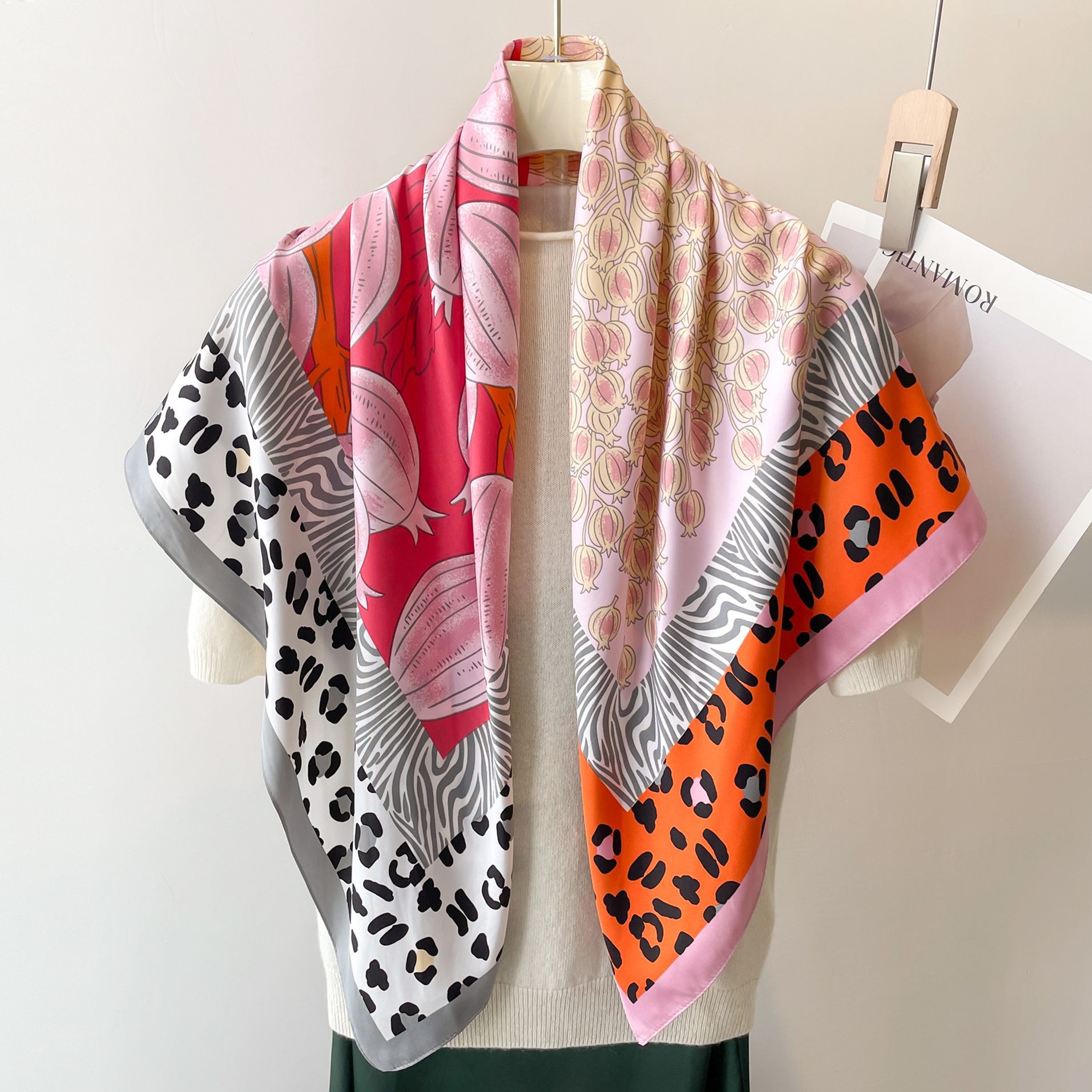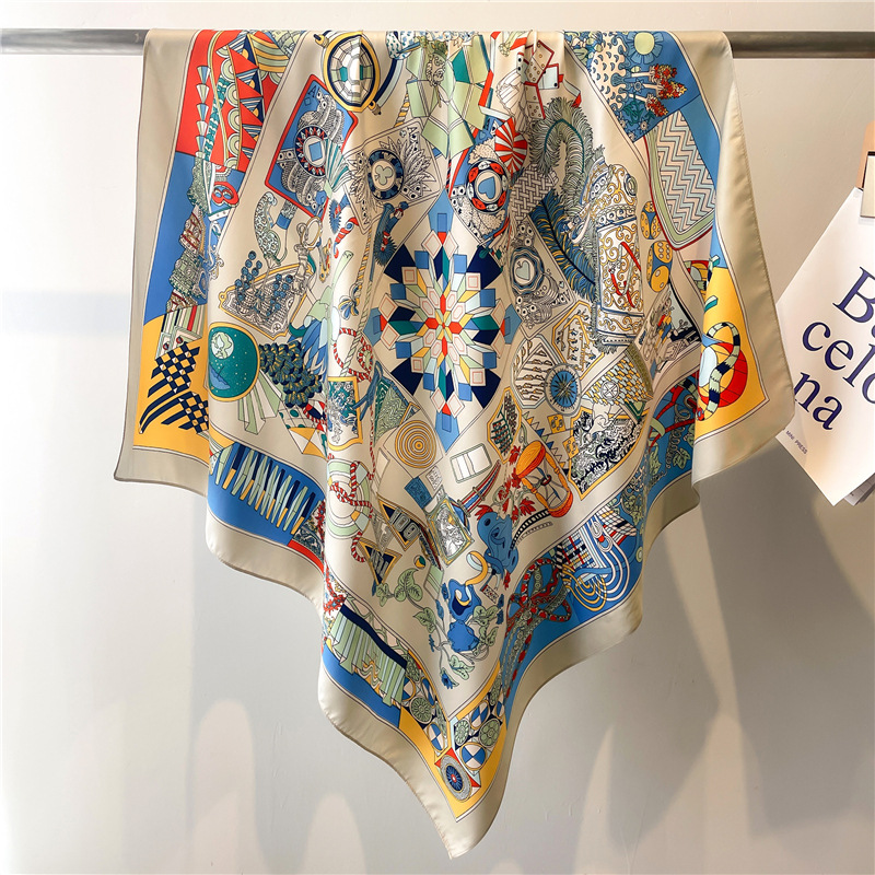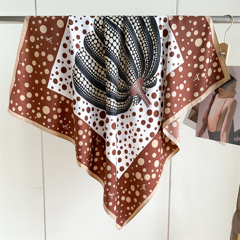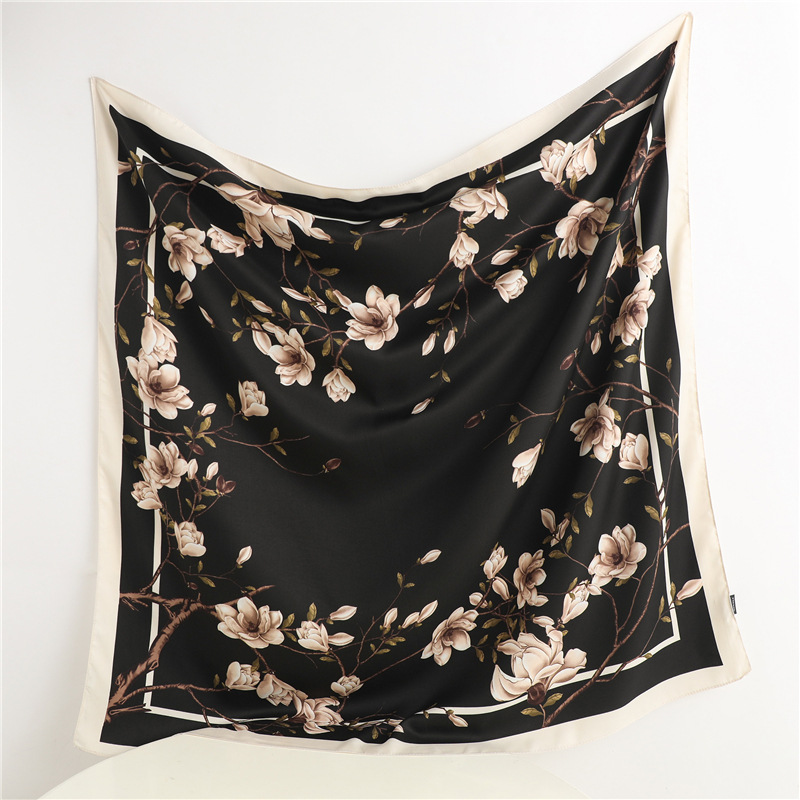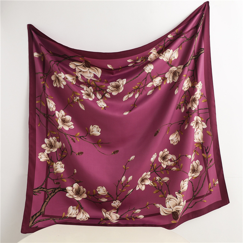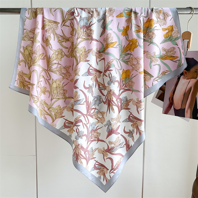 봄과 여름 머리 스카프 인쇄 능 직물 대형 사각형 스카프 작은 향기로운 스타일 실크 스카프 여성 안티 태양 스카프 장식 스카프 목도리 90cm스토어 가기