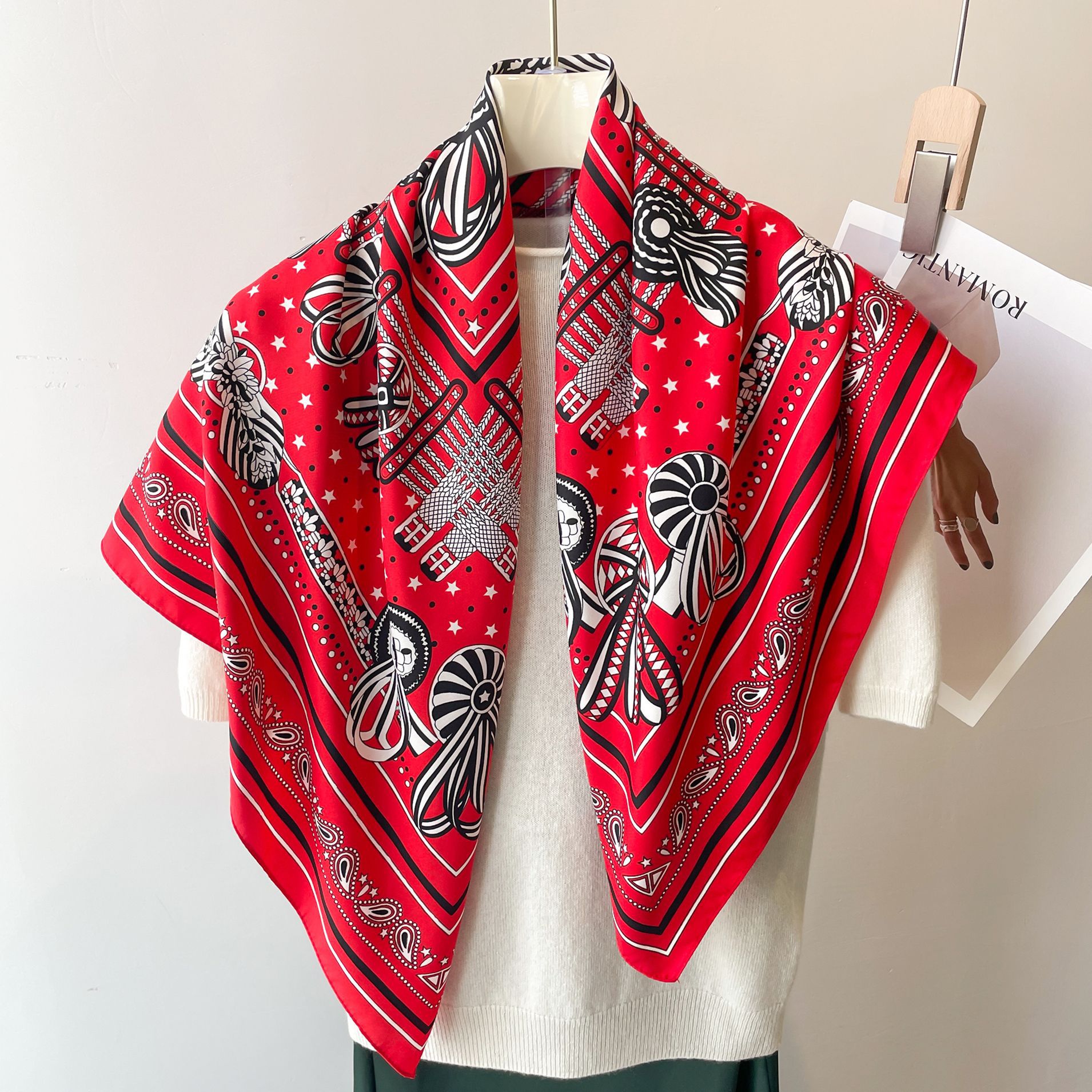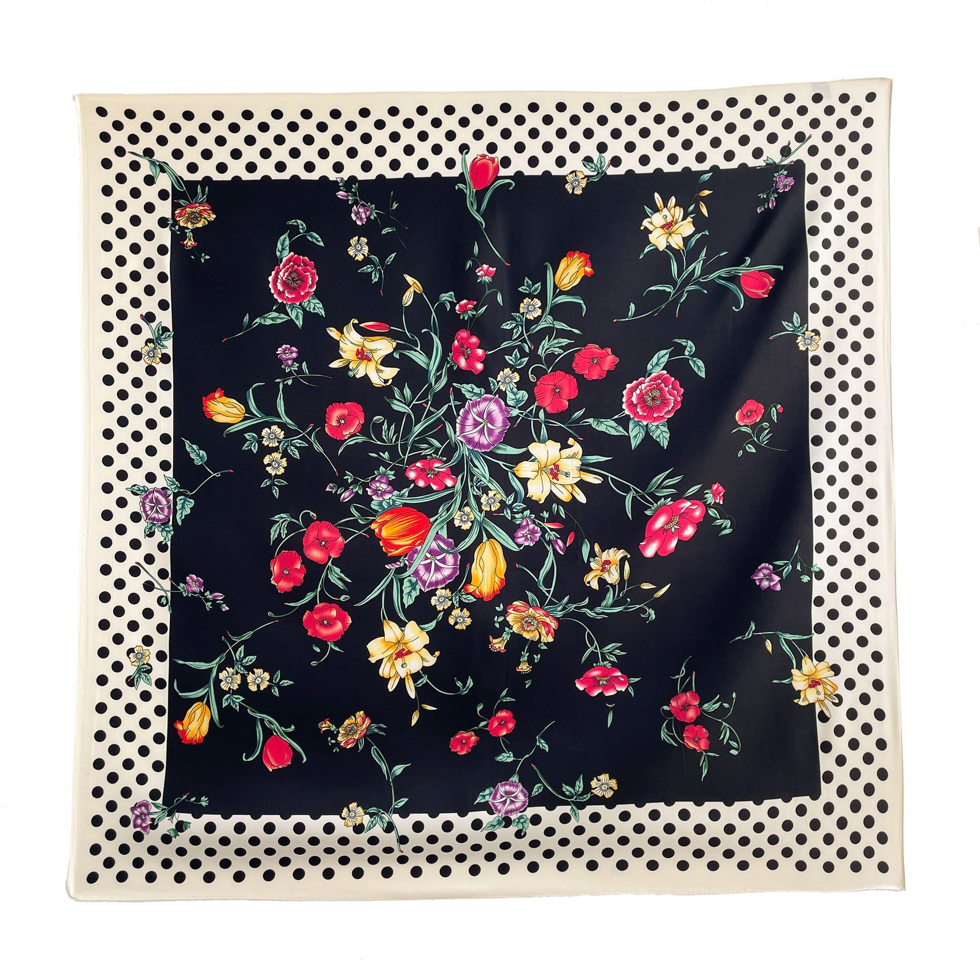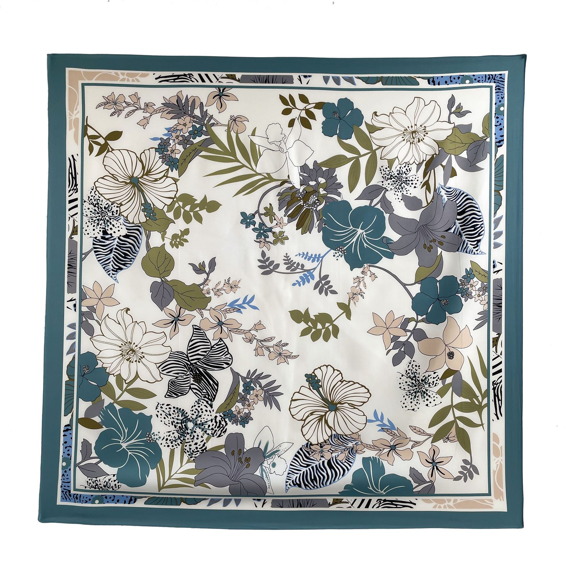 봄과 여름 머리 스카프 인쇄 능 직물 대형 사각형 스카프 작은 향기로운 스타일 실크 스카프 여성 안티 태양 스카프 장식 스카프 목도리 90cm스토어 가기