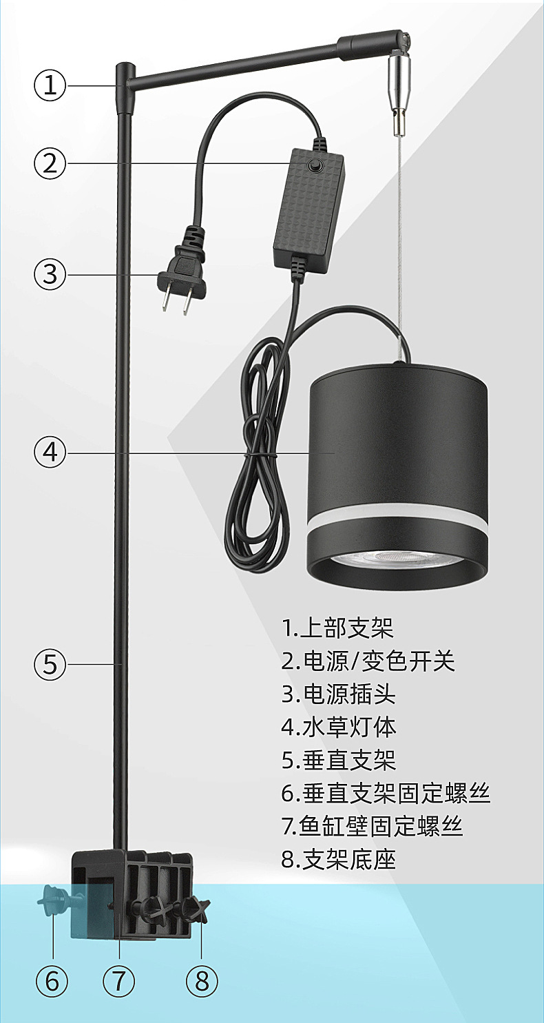 물고기 탱크 물 잔디 다운 라이트 컬러 조정 잔디 탱크 전문 조명 조류 폭파 브래킷 조합 클립 램프 led 작은 샹들리에스토어 가기