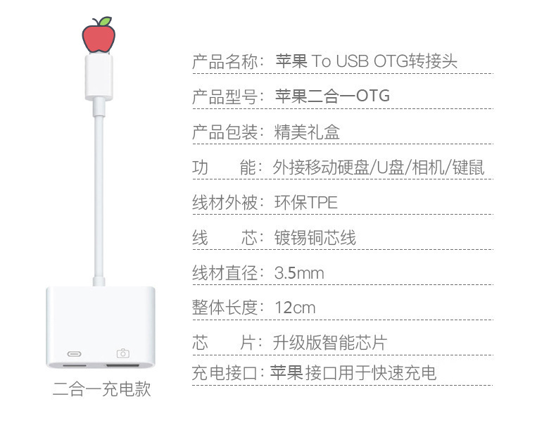 Apple 어댑터 충전 데이터 투인원 OTG 어댑터 usb3.0 전송 읽기 U 디스크 카드 리더기에 적용 가능스토어 가기
