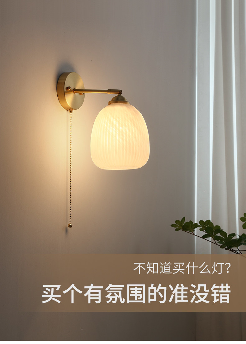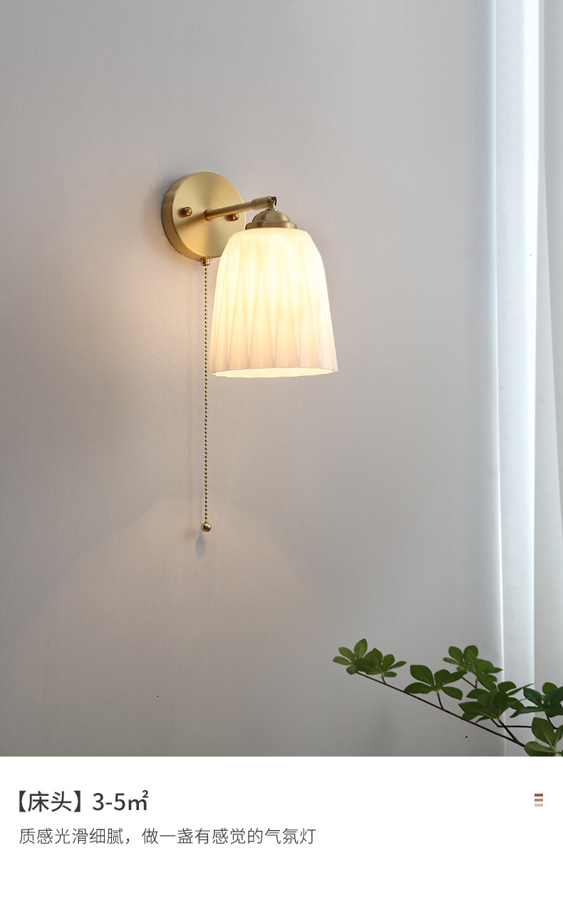 디자이너 북유럽 모든 구리 벽 램프 일본 예술 배경 벽 장식 램프 통로 침실 침대 옆 램프 케이블 벽 램프