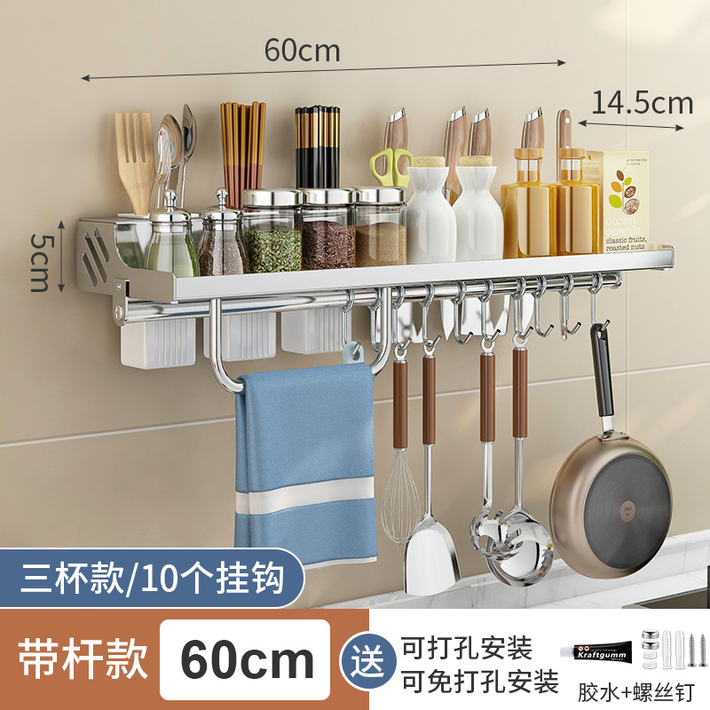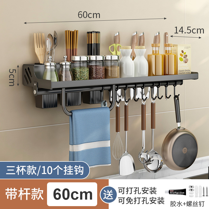 펀치 프리 주방 수납 랙 벽걸이 형 다기능 젓가락 나이프 홀더 가정용 벽 용품 보관 랙스토어 가기