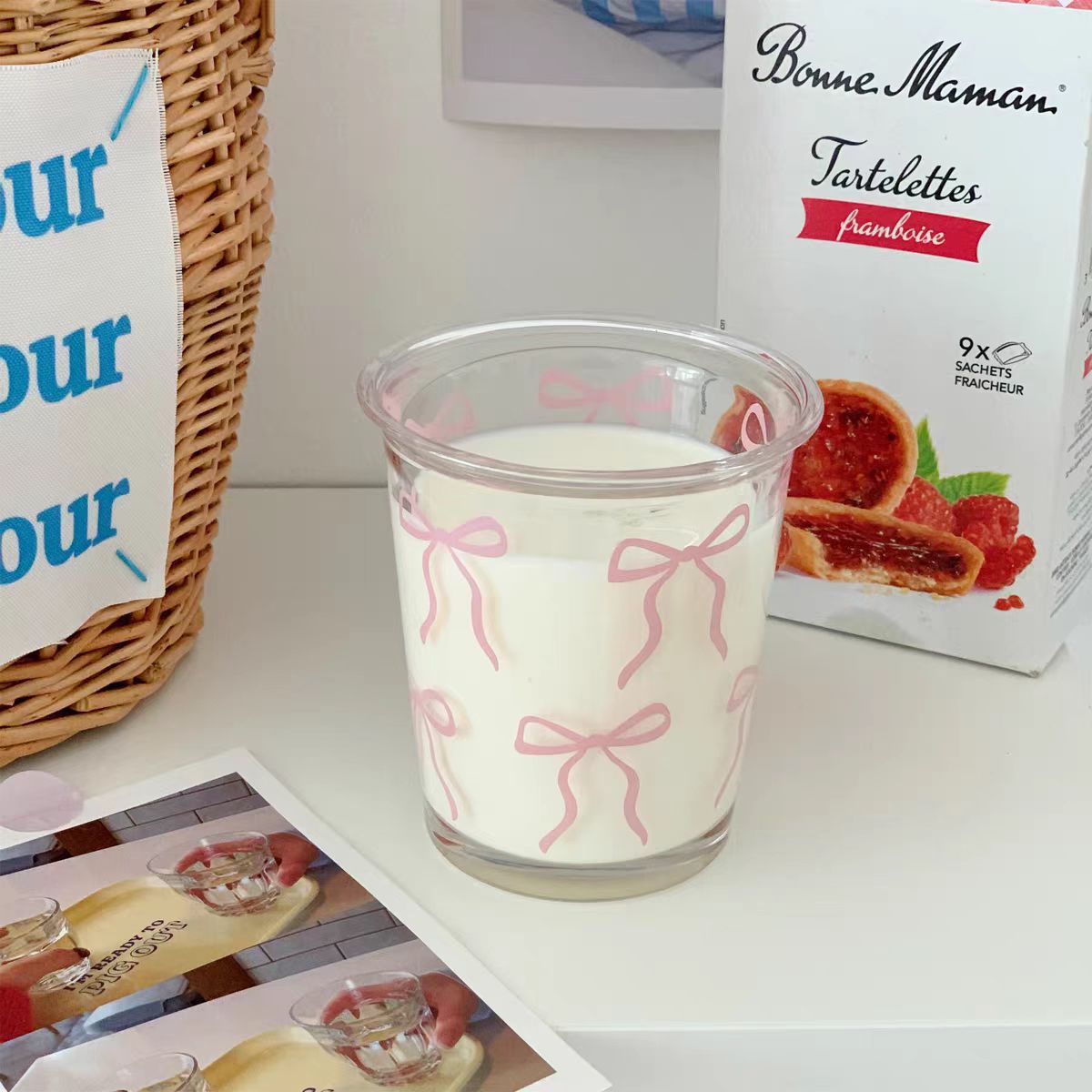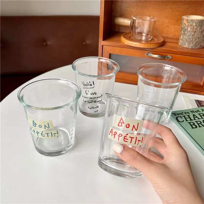 일본어와 한국인 Blogger 프랑스어 알파벳 인쇄 유리 가정용 아침 식사 컵 우유 차 컵 커피 컵 브이 로그 사진