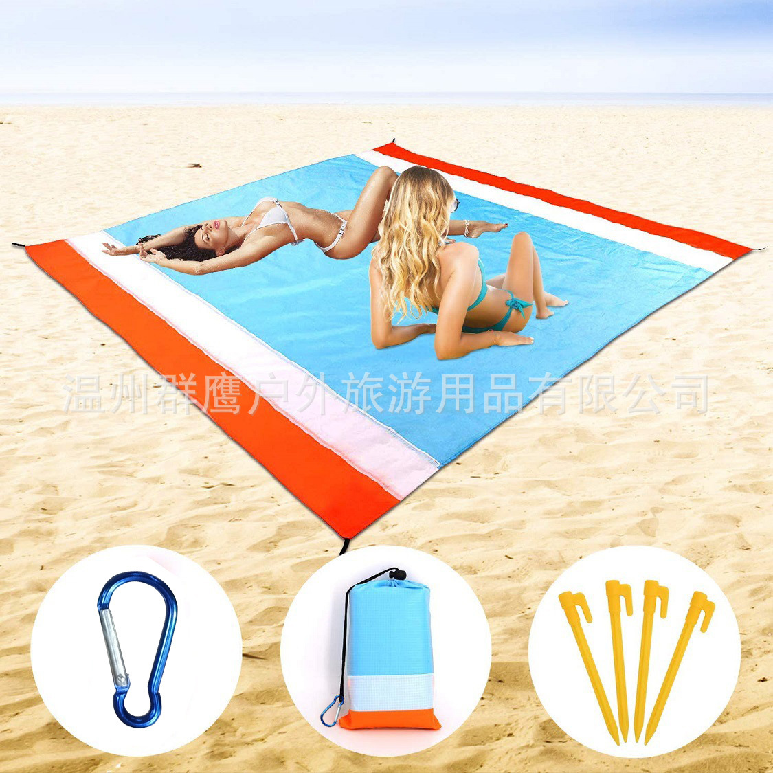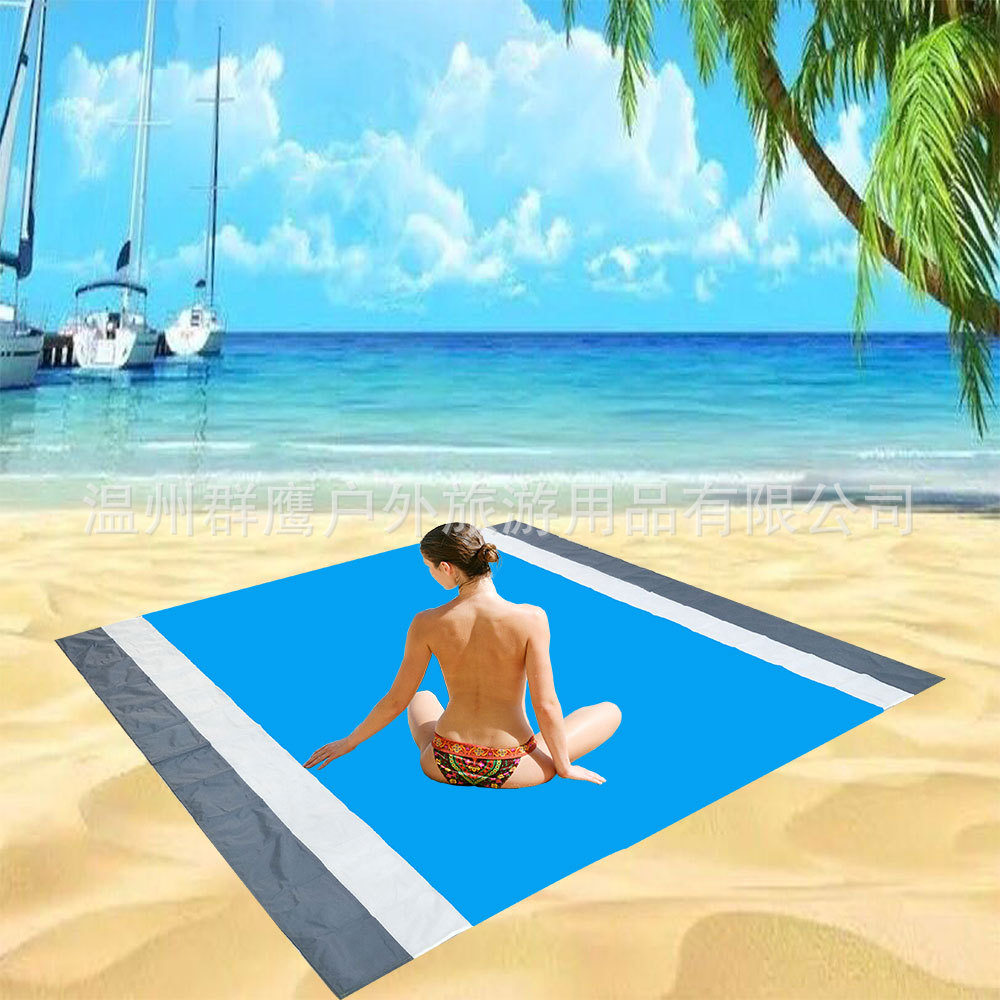 새로운 비치 매트 야외 초경량 방습 매트 방수 캠핑 피크닉 매트 포켓 휴대용 모래 방지 5 피스 비치 매트스토어 가기
