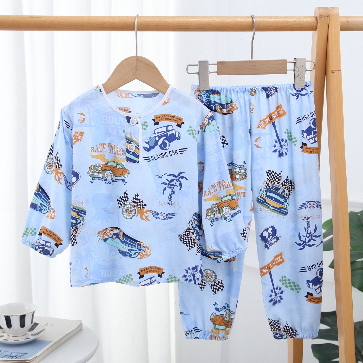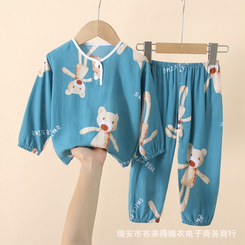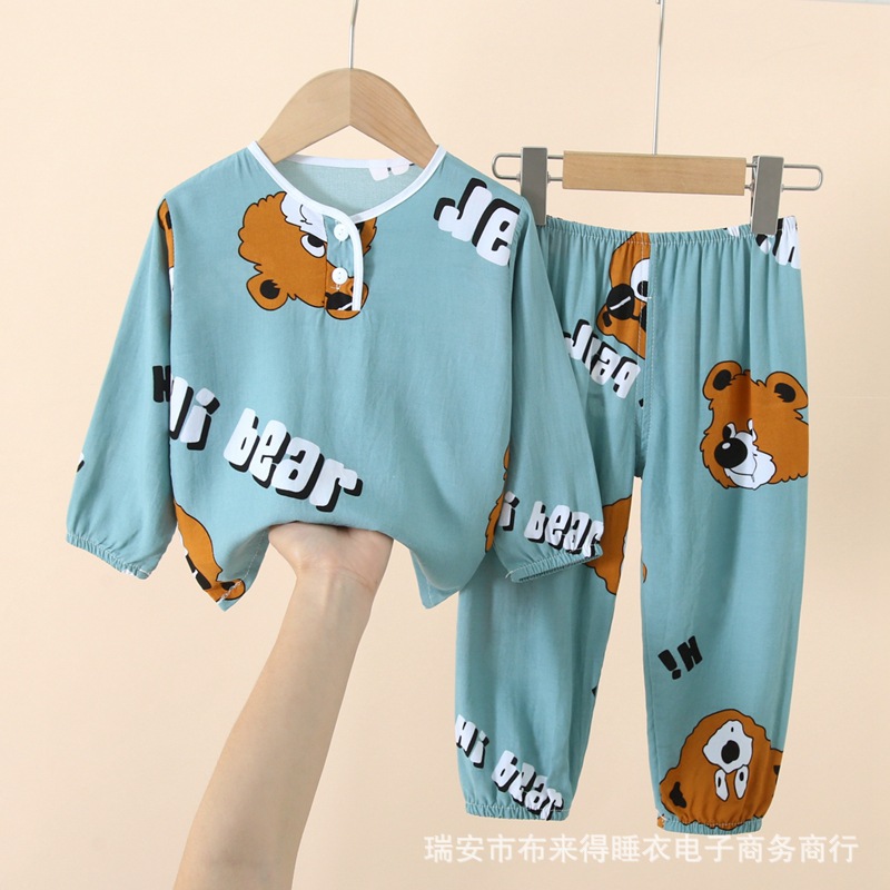 어린이 면 실크 잠옷 소년과 소녀를위한 긴팔 세트 아기의 면 실크 모기 방지 에어컨 가정용 의류 얇은 아동 의류스토어 가기