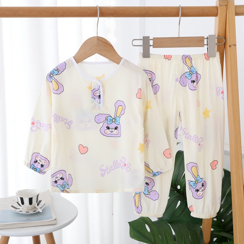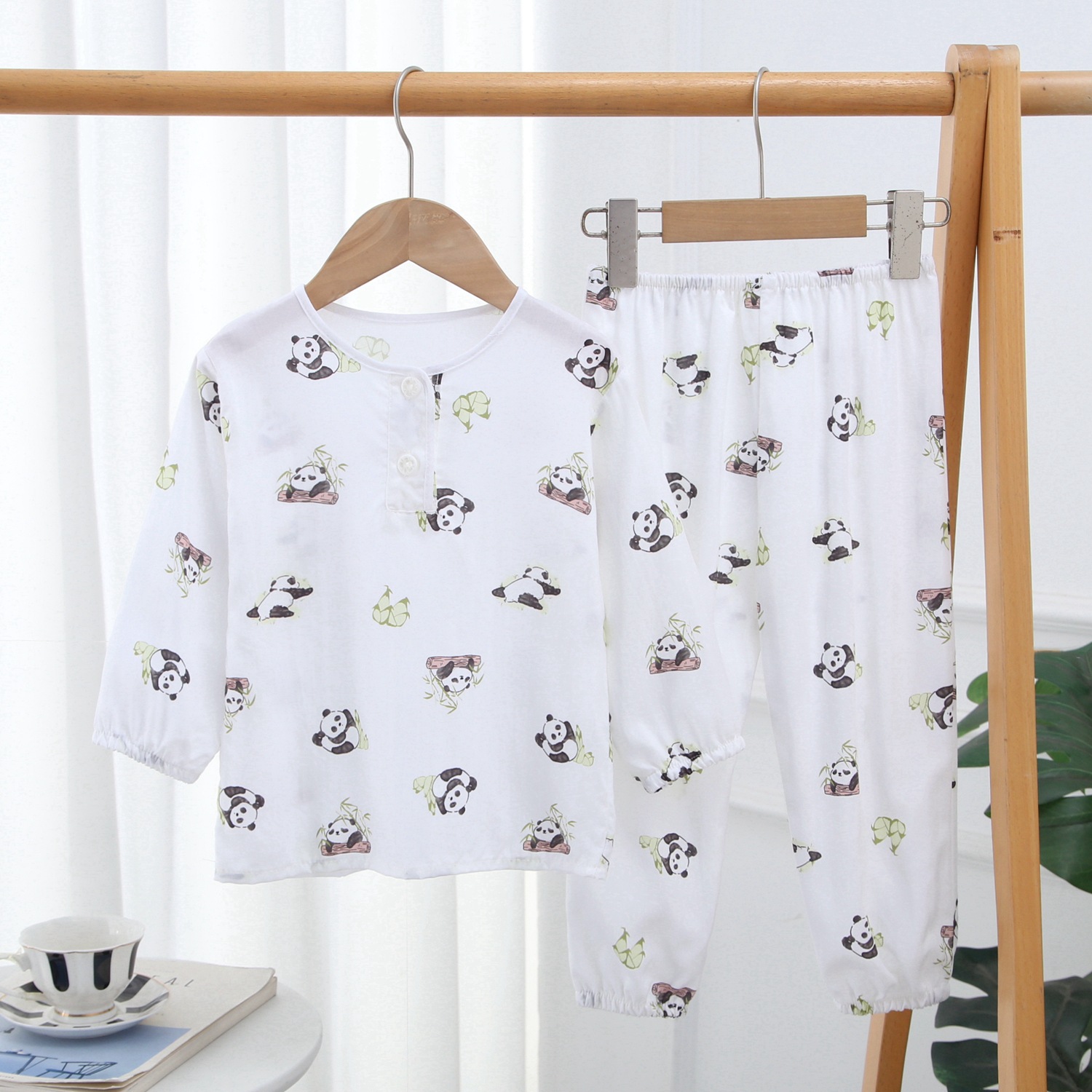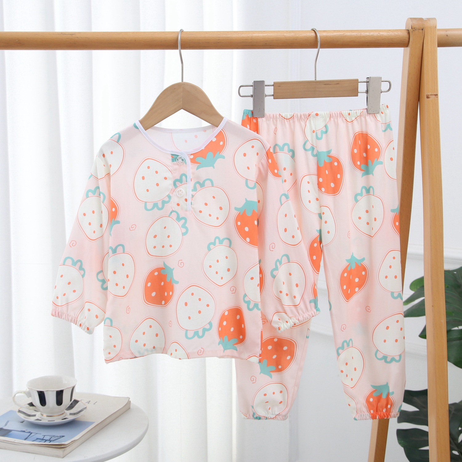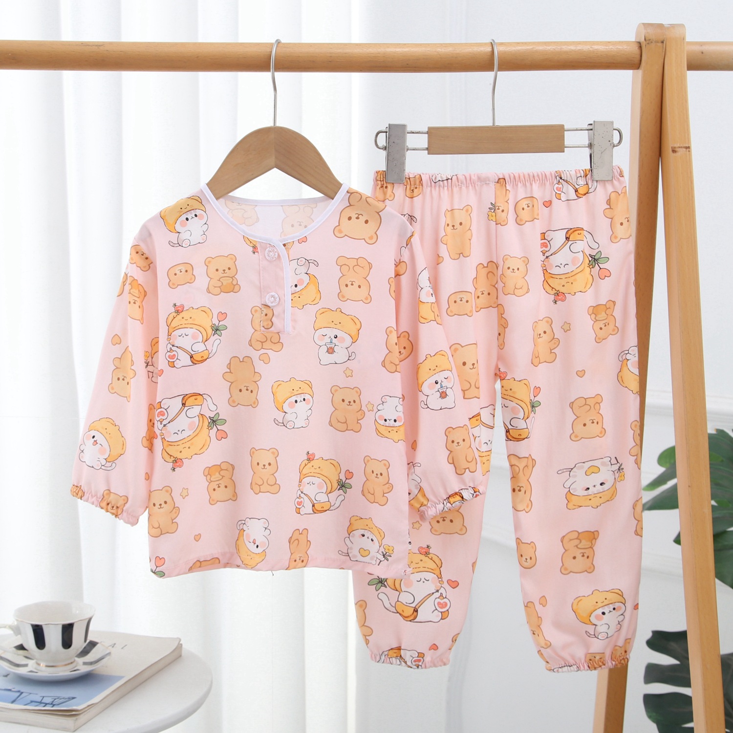 어린이 면 실크 잠옷 소년과 소녀를위한 긴팔 세트 아기의 면 실크 모기 방지 에어컨 가정용 의류 얇은 아동 의류