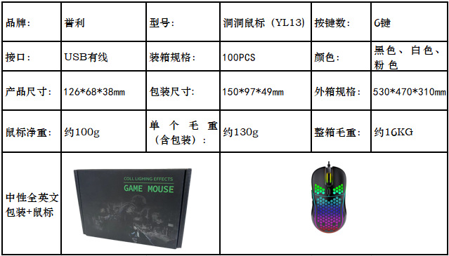 국경을 넘는 새로운 디자인의 유선 마우스, 발광 및 속이 빈 경량형 e스포츠 게이밍 인체공학적 노트북 마우스