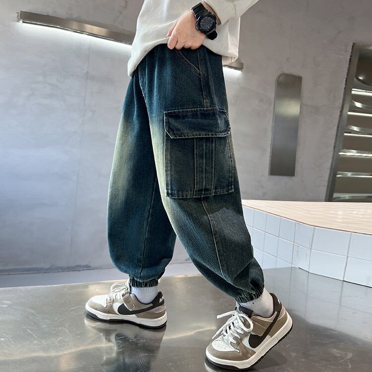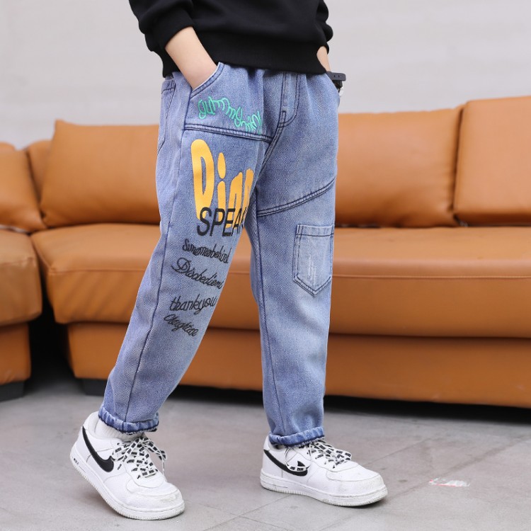 어린이 소년 바지 봄과 가을 2024 새로운 대형 어린이 봄 청바지 소년 봄 바지스토어 가기