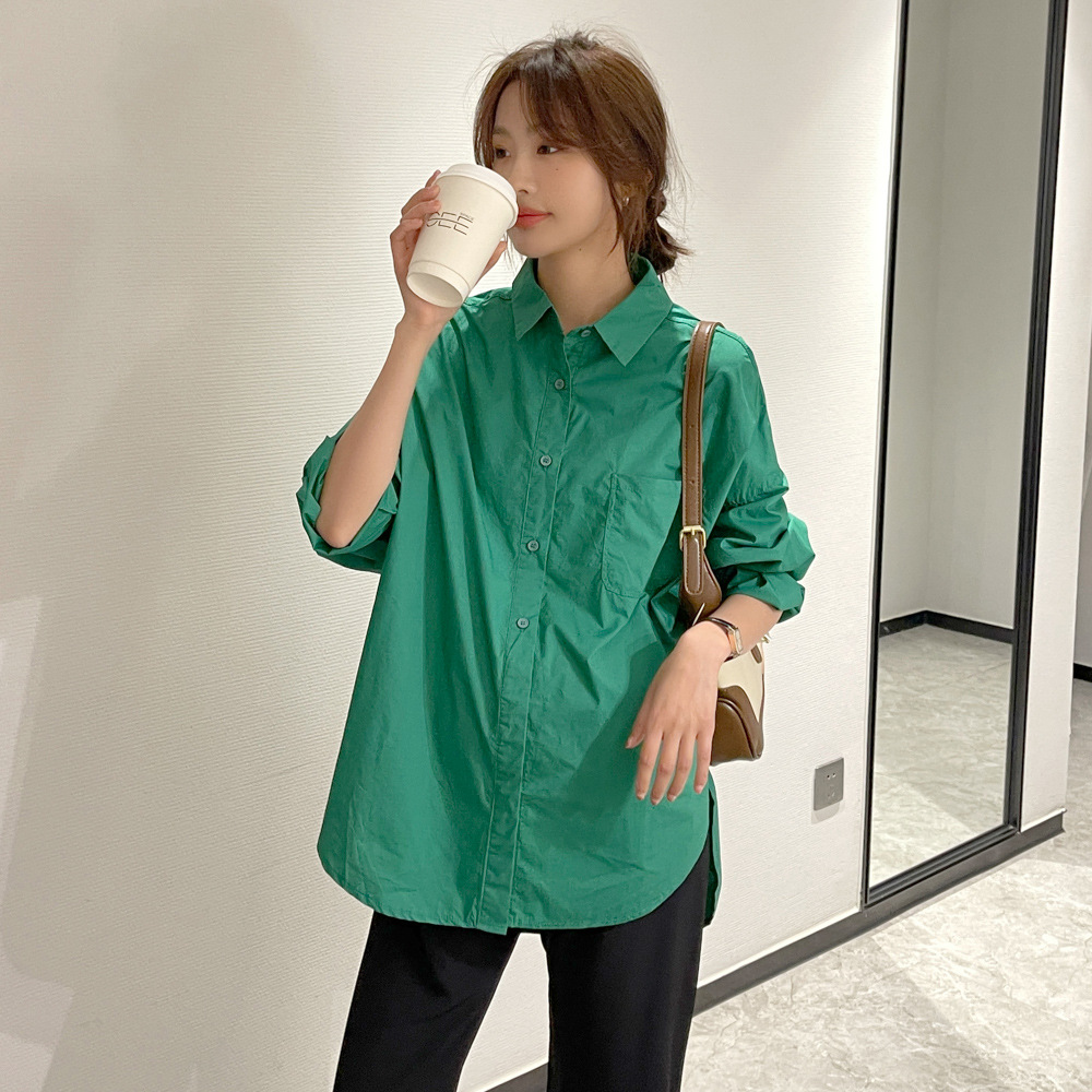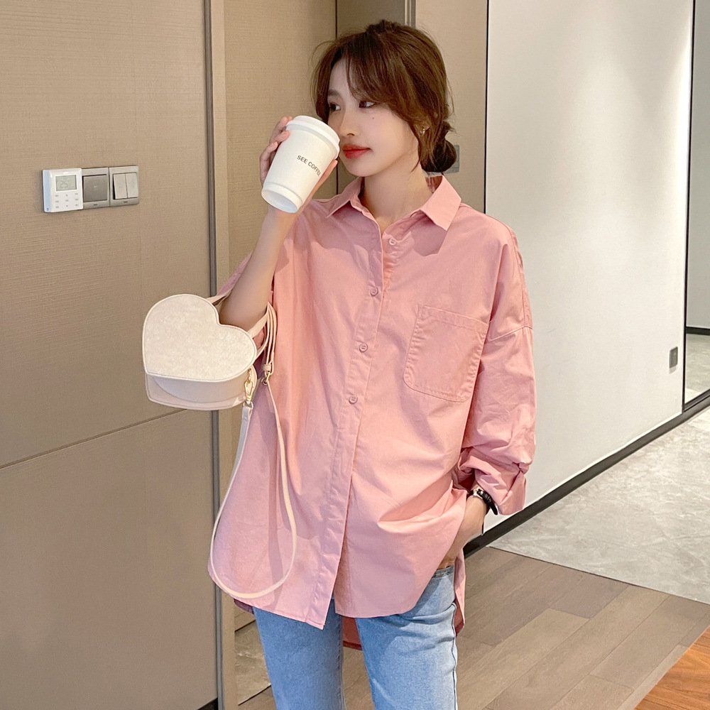 봄과 여름 새로운 출산복 인터넷 연예인 달콤한 신선한 셔츠 세련된 돌린 칼라 유행 통근 긴 소매 셔츠