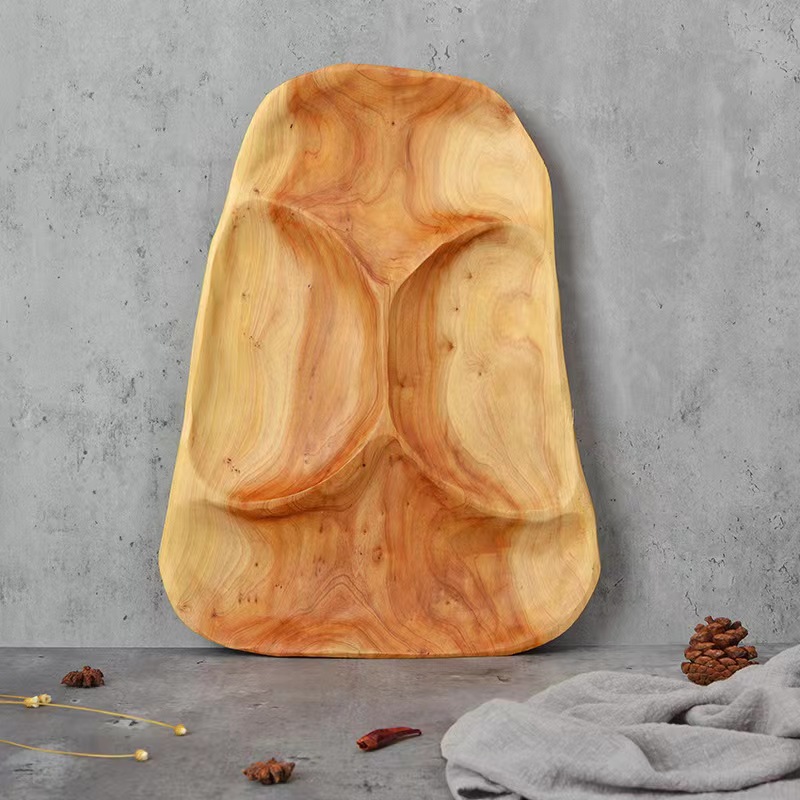 빈티지 아름다운 홈 캔디 보관 트레이 로그 호텔 멀티 그리드 말린 과일 트레이 간단하고 관대 한 스낵 과일 트레이