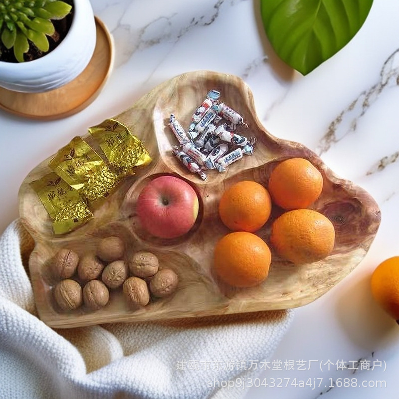 빈티지 아름다운 홈 캔디 보관 트레이 로그 호텔 멀티 그리드 말린 과일 트레이 간단하고 관대 한 스낵 과일 트레이스토어 가기