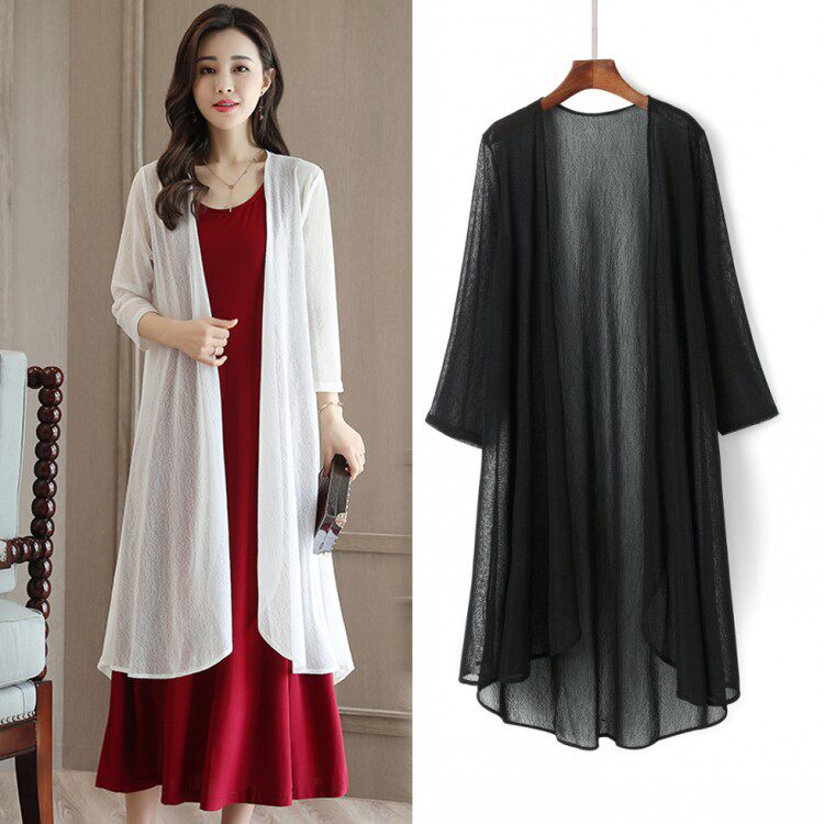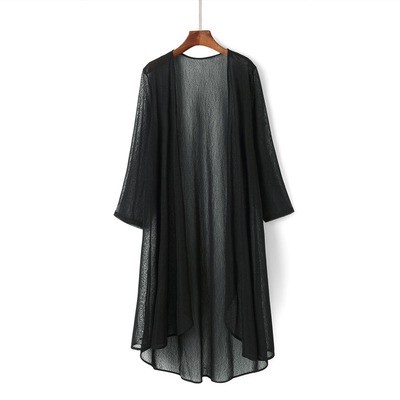 2023 신상품 아이스 실크 모든 매치 롱 숄 여름 스커트 탑 중간 길이 외부 자외선 차단제 쉬폰 얇은 가디건스토어 가기