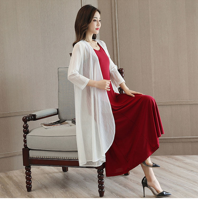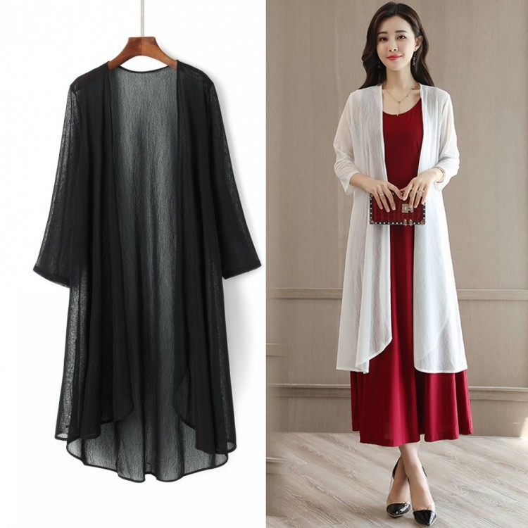 2023 신상품 아이스 실크 모든 매치 롱 숄 여름 스커트 탑 중간 길이 외부 자외선 차단제 쉬폰 얇은 가디건