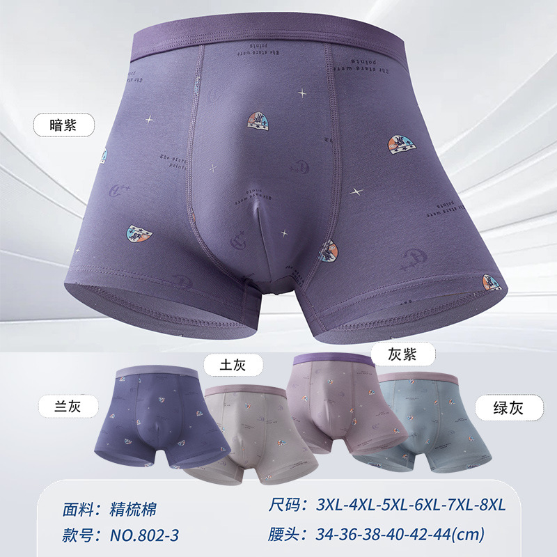 남성용 순면 프린트 무지 사각팬티 시리즈, 중간 허리 높이 사각팬티, 남성용 위에바 직공급