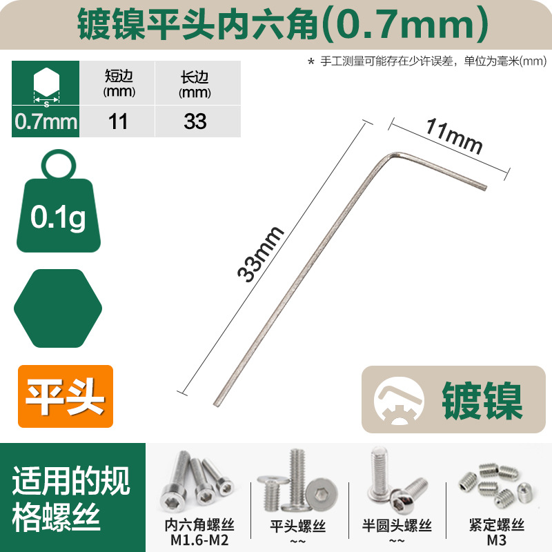S2 강철 합금 렌치 플랫 헤드 육각 렌치 도매 고경도 육각 렌치 드라이버 육각 키 0.7-스토어 가기
