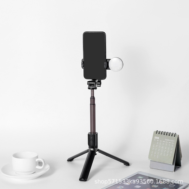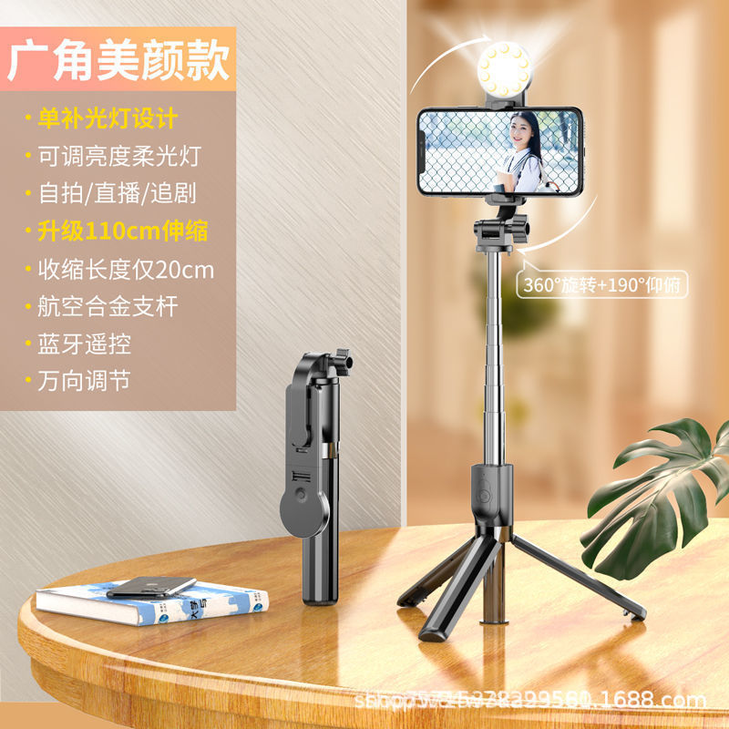 아름다움 조명 통합 삼각대와 공장 직접 셀프 타이머 블루투스 셀카 스틱 휴대 전화 셀카 스틱스토어 가기