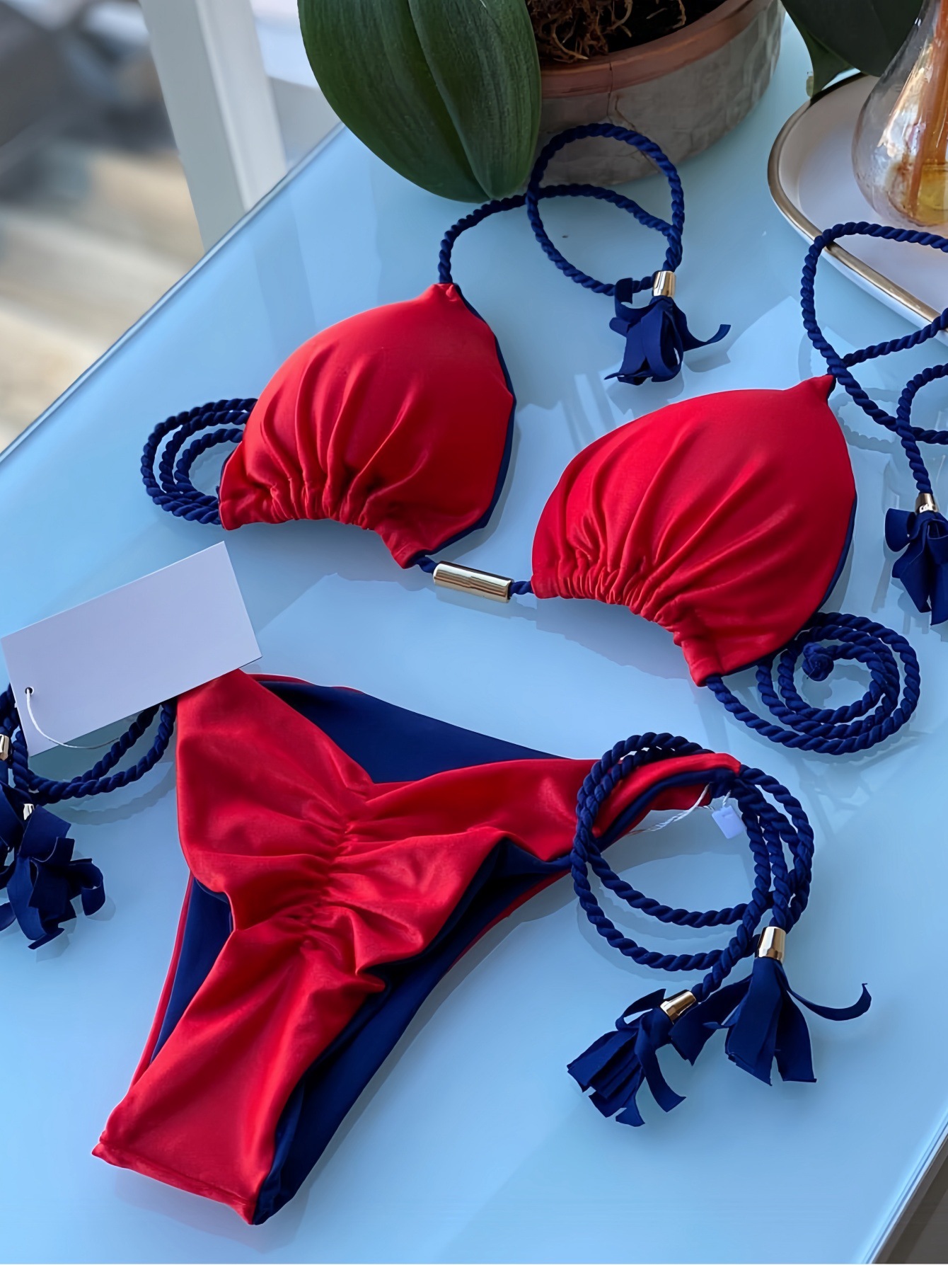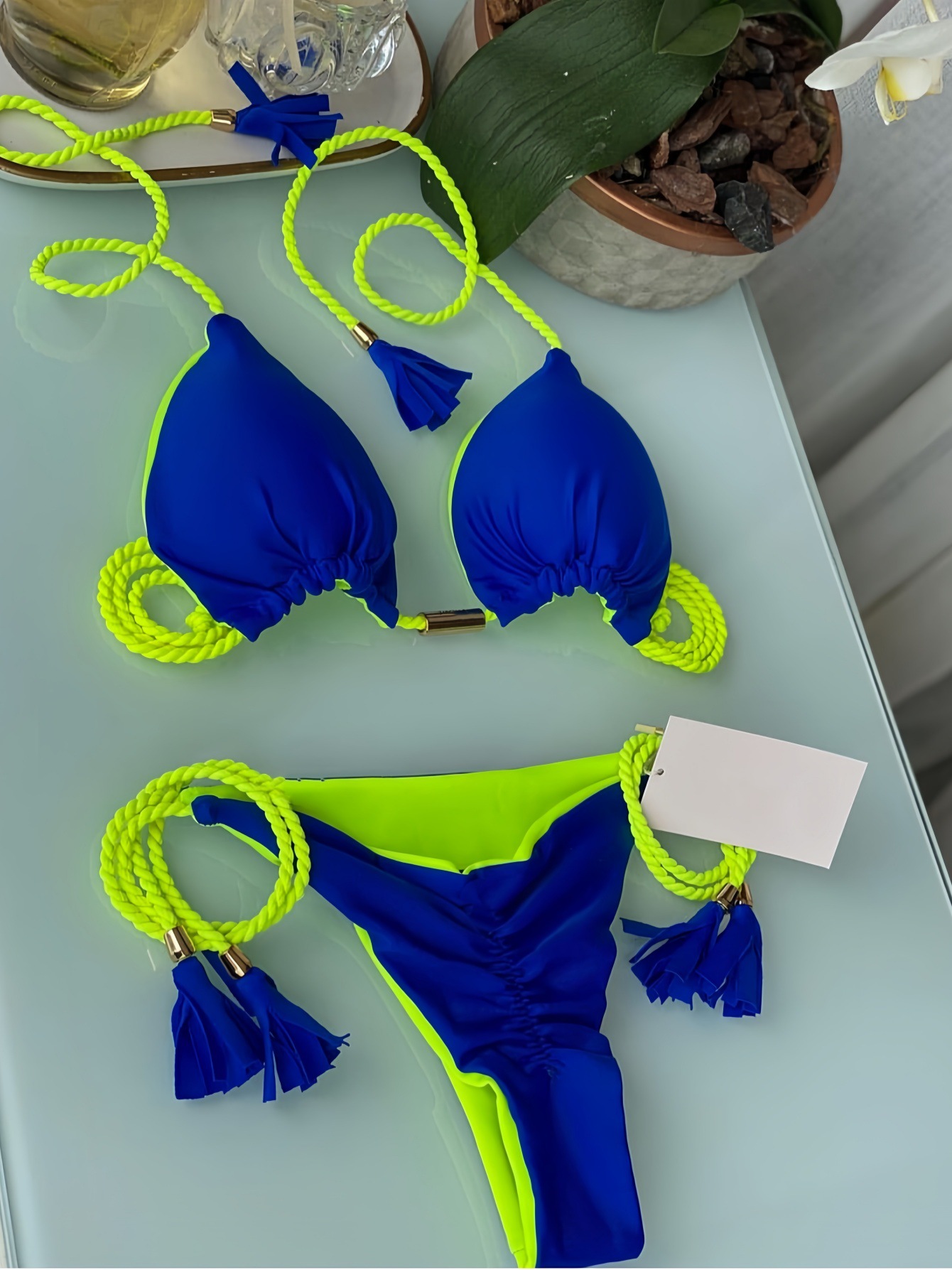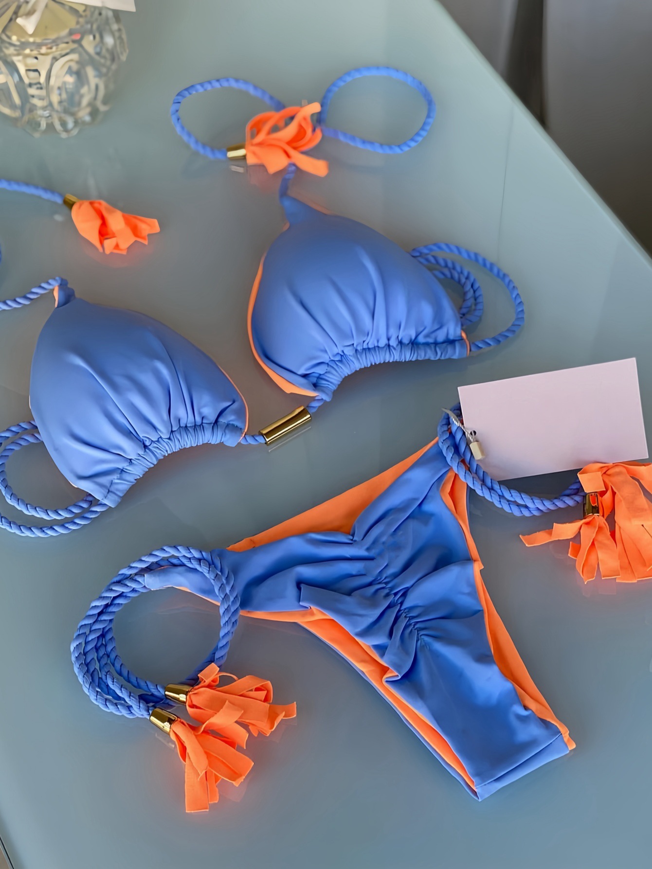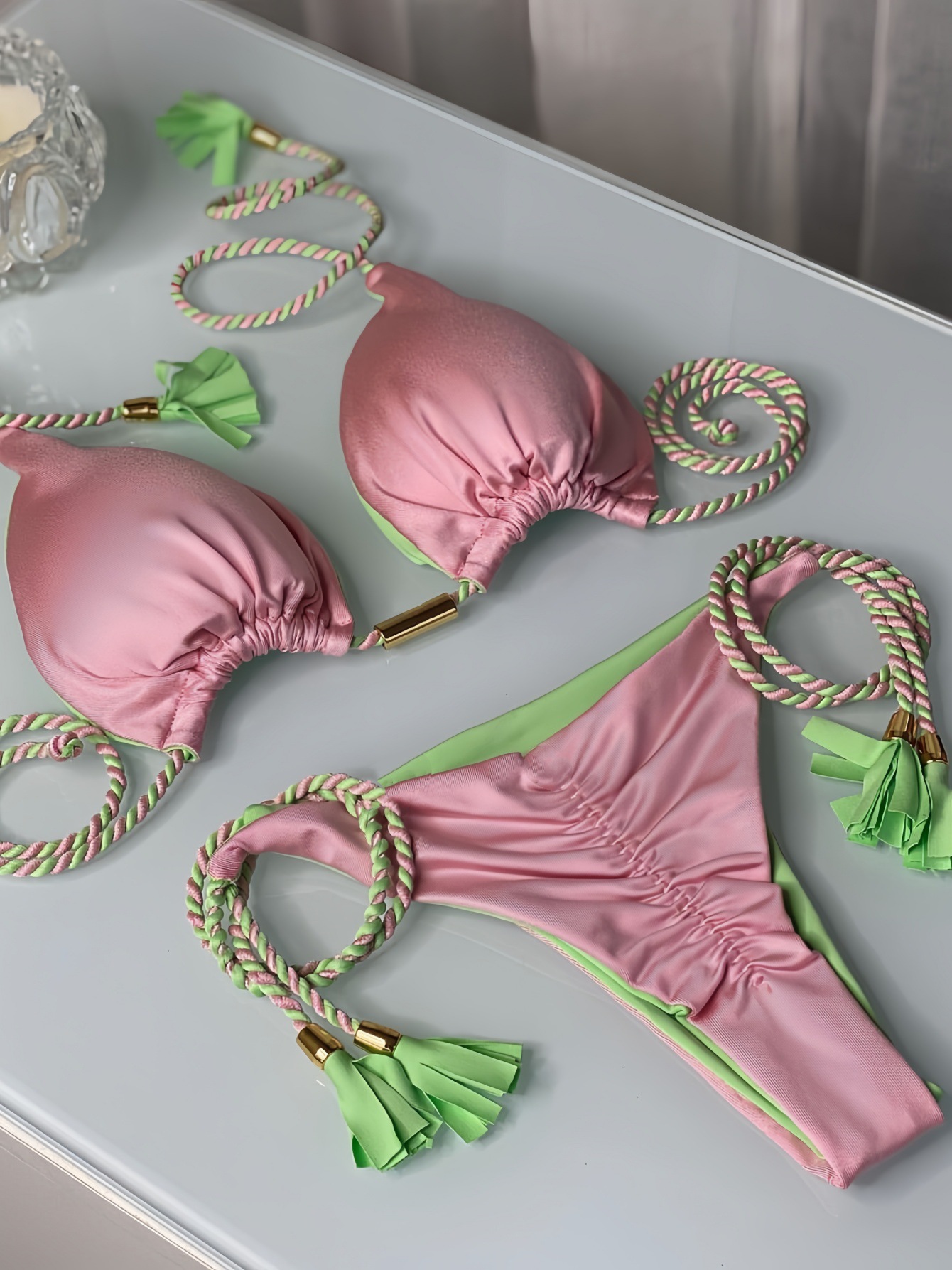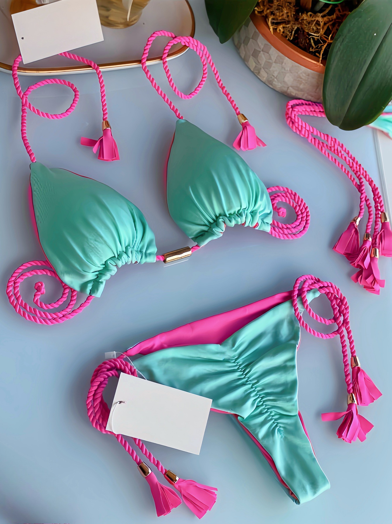 2025 새로운 백리스 로프 비키니 삼각형 수영복 아마존 유럽과 미국 다색 수영복 재고 공장 도매스토어 가기