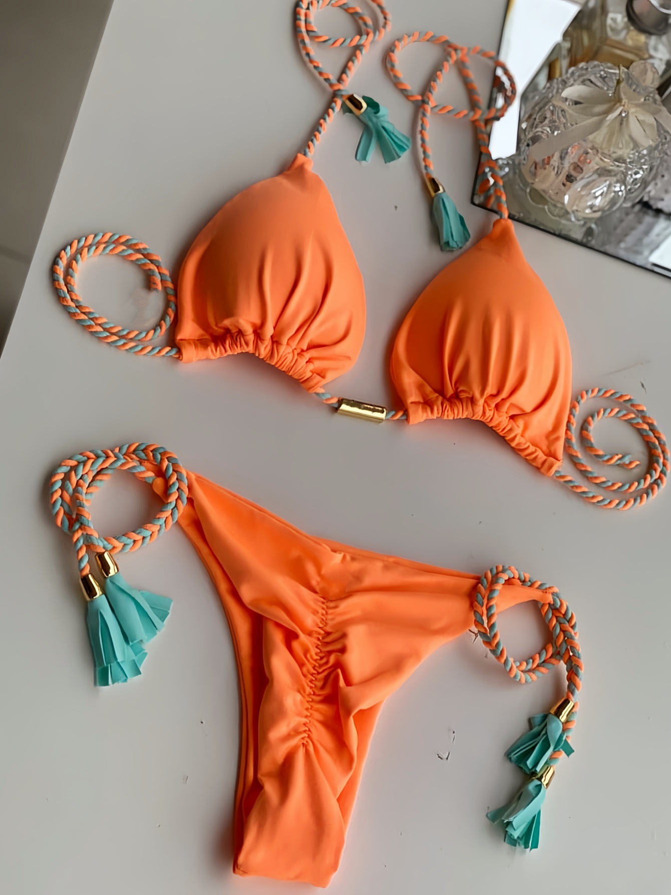 2025 새로운 백리스 로프 비키니 삼각형 수영복 아마존 유럽과 미국 다색 수영복 재고 공장 도매