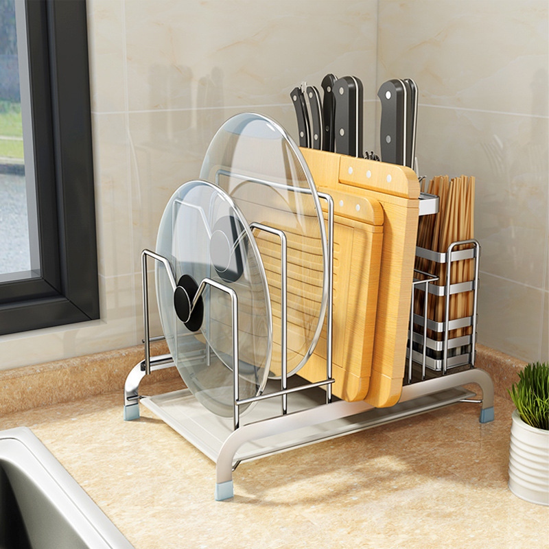 304 스테인레스 스틸 커터 세트 주방 조리대 다기능 스토리지 랙 스토리지 랙 냄비 뚜껑 도마 조합 세트스토어 가기