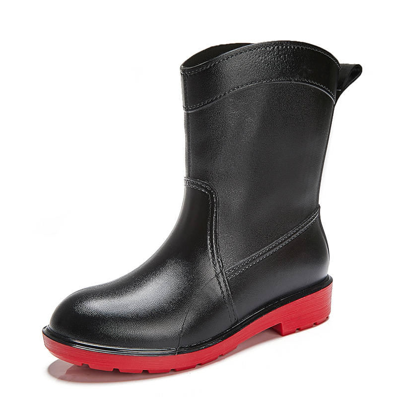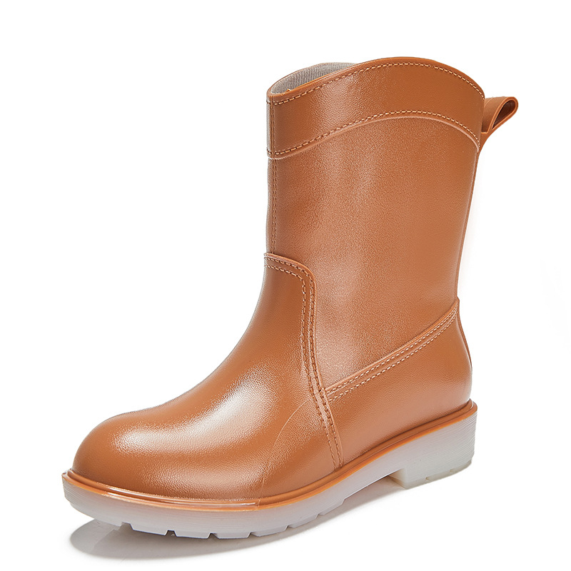 유행 간단한 여성용 장화 미드 튜브 방수 내마모성 미끄럼 방지 성인 장화 고무 신발 신발 플라스틱 물 신발 워터 부츠