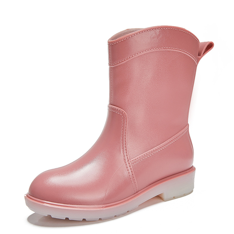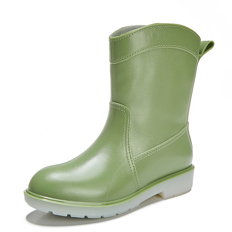 유행 간단한 여성용 장화 미드 튜브 방수 내마모성 미끄럼 방지 성인 장화 고무 신발 신발 플라스틱 물 신발 워터 부츠스토어 가기