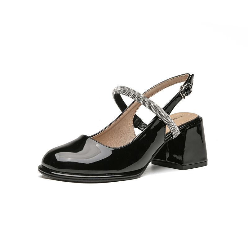 여성용 2026년 여름 신상 프렌치 스타일 오픈토 샌들, 스퀘어토 두꺼운 굽 하이힐, 레트로 워터다이아몬드 스트랩 메리제인 슈즈스토어 가기