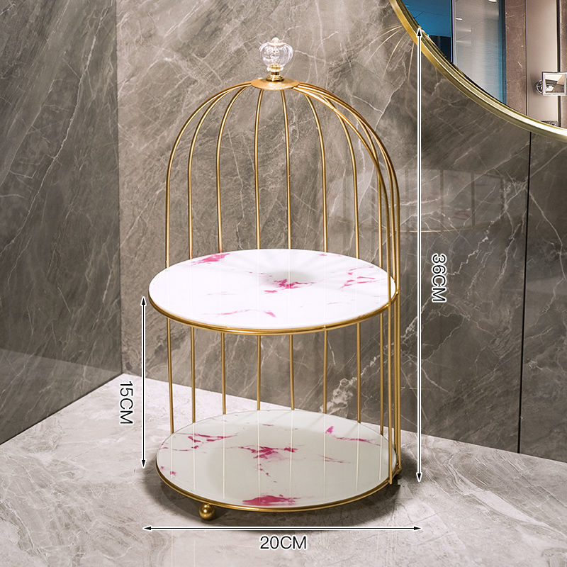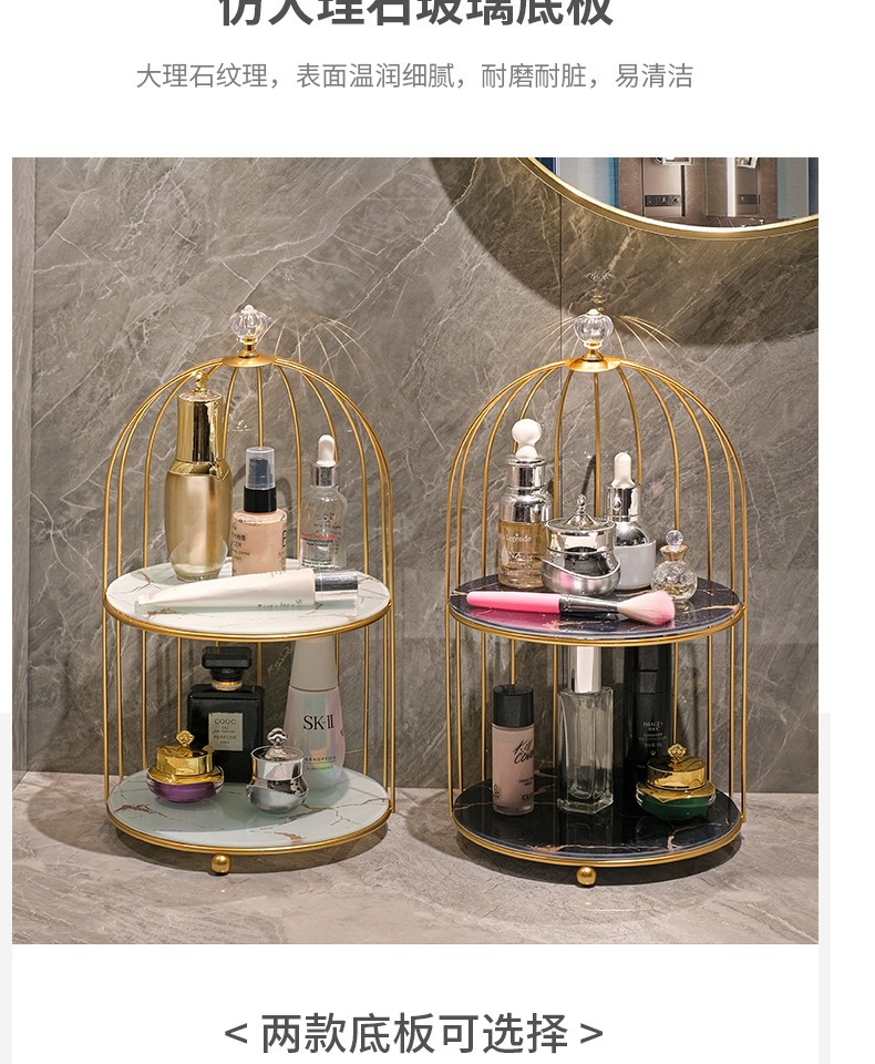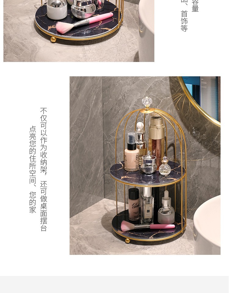 家用日用奢侈豪华浴室客厅卫生间洗漱台梳妆台落地桌面收纳盒洗手台鸟笼置物架多层铁皮防水防潮手提可放置化妆品洗漱品沐浴露洗发露