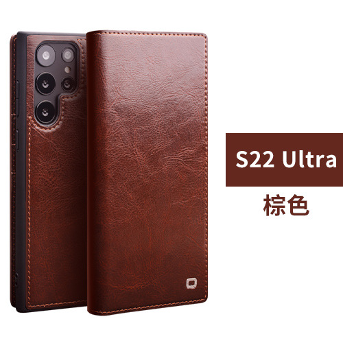 삼성 갤럭시 S24 울트라 휴대폰 케이스, 천연 가죽 S26 플러스 보호 케이스, 플립 카드 슬롯 포함