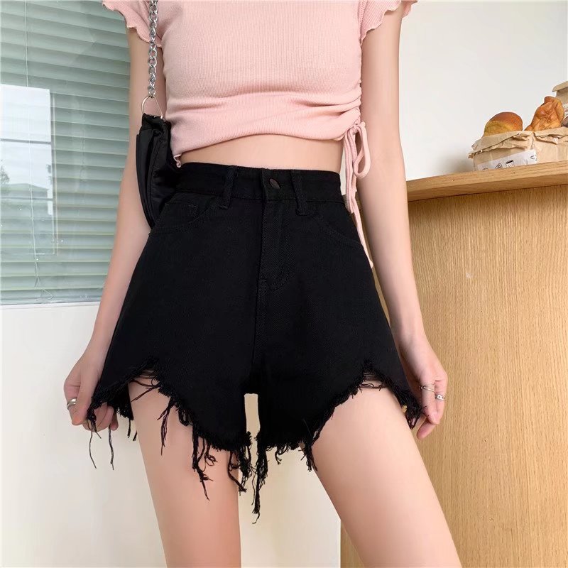 2022 데님 반바지 여자 여름 슬림 그물 빨간 학생 한국 높은 허리 새로운 찢어진 넓은 다리 핫 팬츠 도매스토어 가기