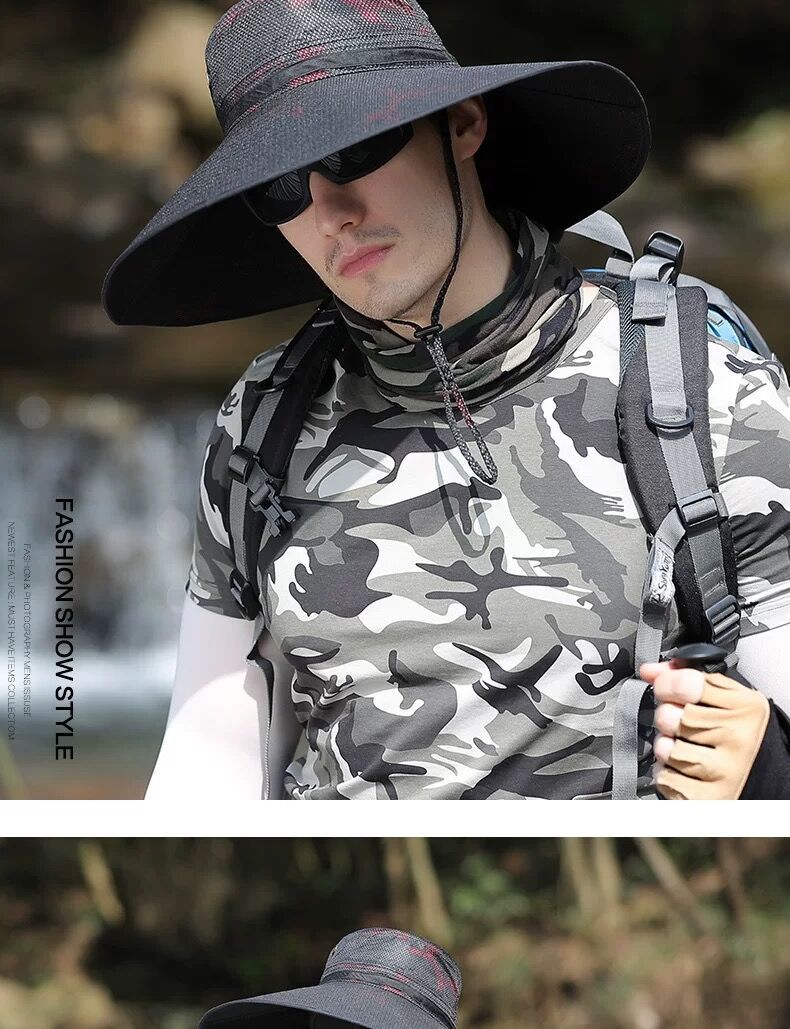 모자 남자 여름 큰 모자 챙 야외 어부 모자 선 스크린 낚시 태양 모자 청소년 등산 사이클링 태양 모자