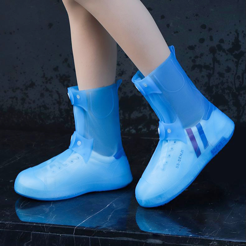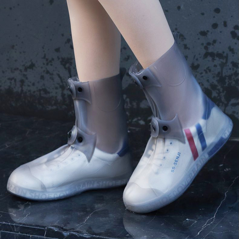 업그레이드 버튼 TPE 미드 하이 배럴 방수 신발 커버 두꺼운 내마모성 더블 레이어 밑창 성인 남성 및 여성 학생 냄새 없음