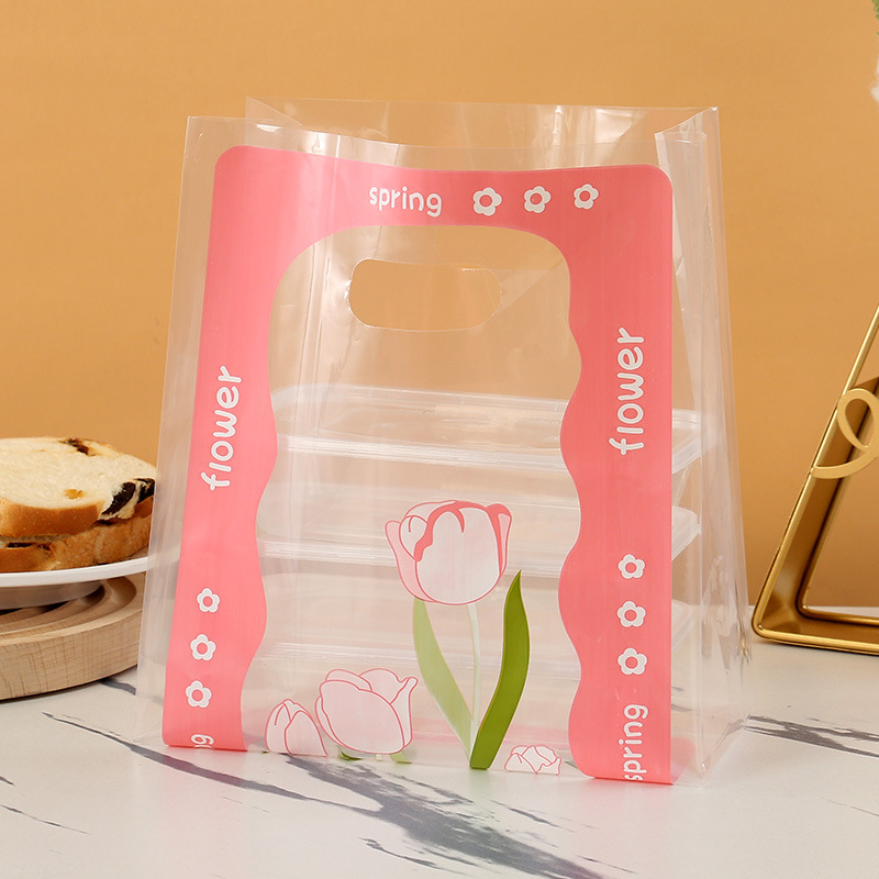 작은 신선한 튤립 디저트 토트 두꺼운 테이크 아웃 포장 가방 투명 비닐 봉투 큰 선물 가방 샐러드스토어 가기