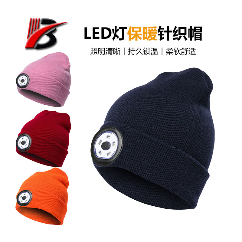 冬天保暖LED灯毛线帽 户外夜钓发光帽御寒护耳抓绒针织帽厂家定制