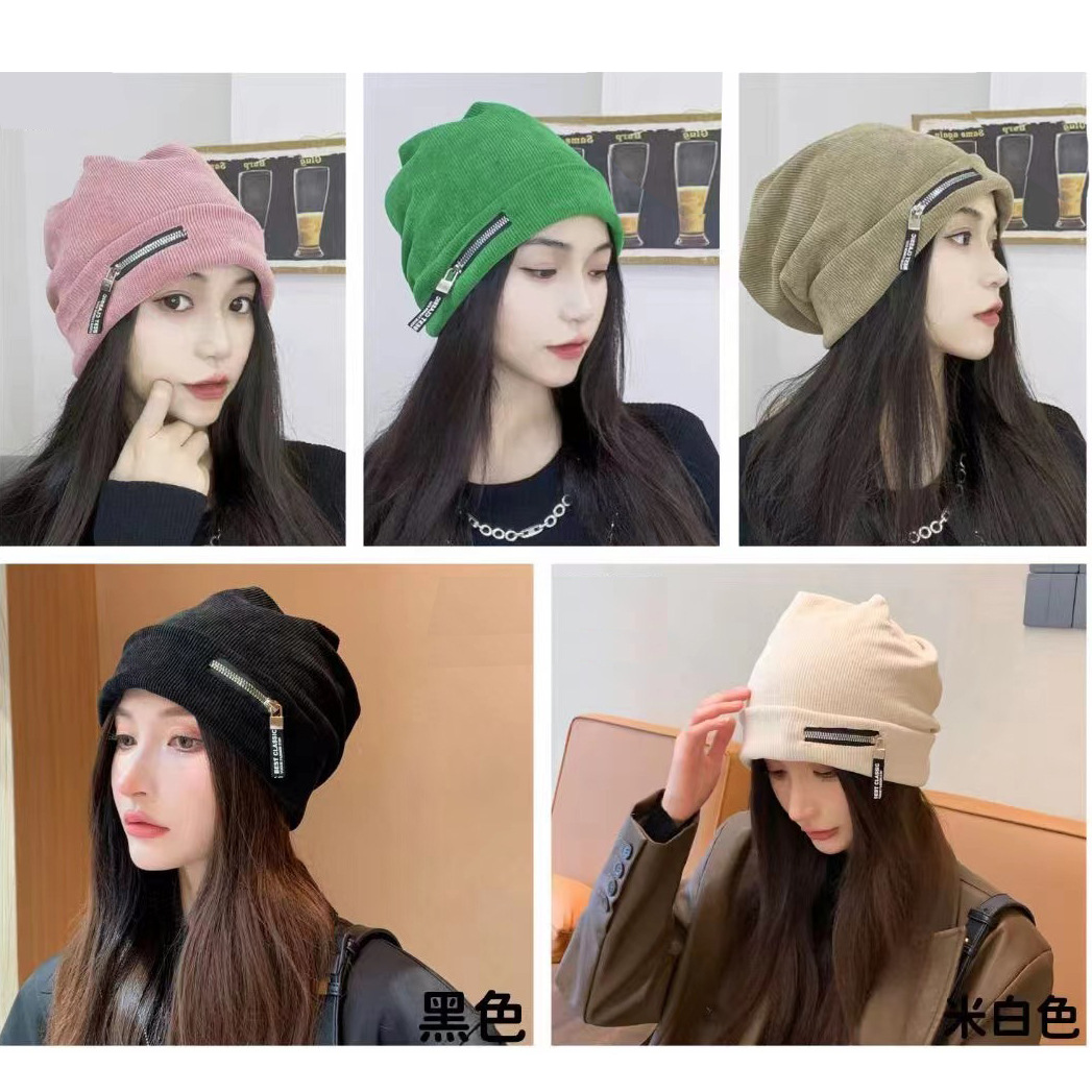 帽子女秋冬季新款显脸小堆堆帽保暖针织空调纯棉睡帽包头月子帽