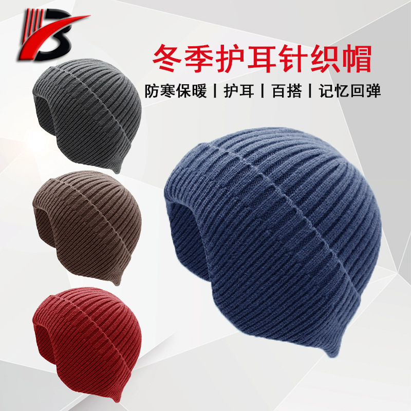 定制秋冬季针织护耳帽冬帽毛帽子防寒保暖护耳纯色毛线帽韩版百搭
