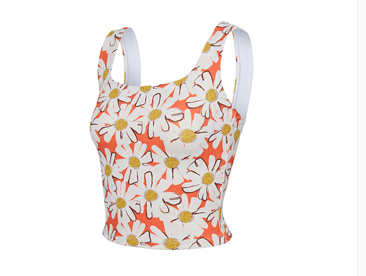 한국 스타일 요가 조끼 인쇄 시리즈 아름다운 슬리밍 충격 방지 전문 훈련 러닝 피트니스웨어 스포츠 조끼 여성용
