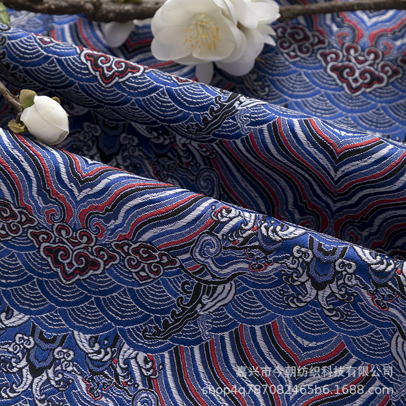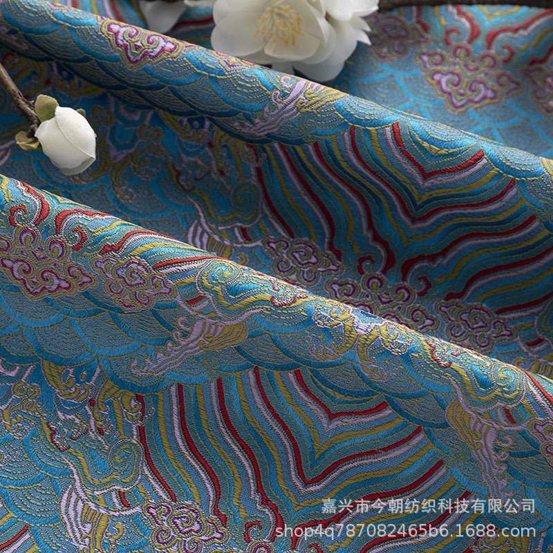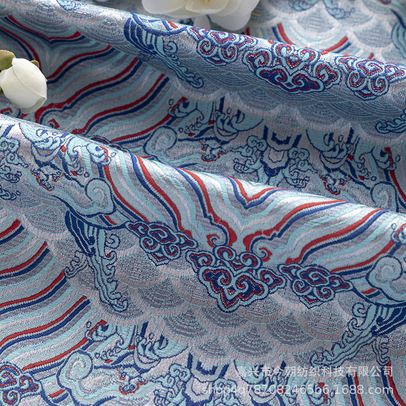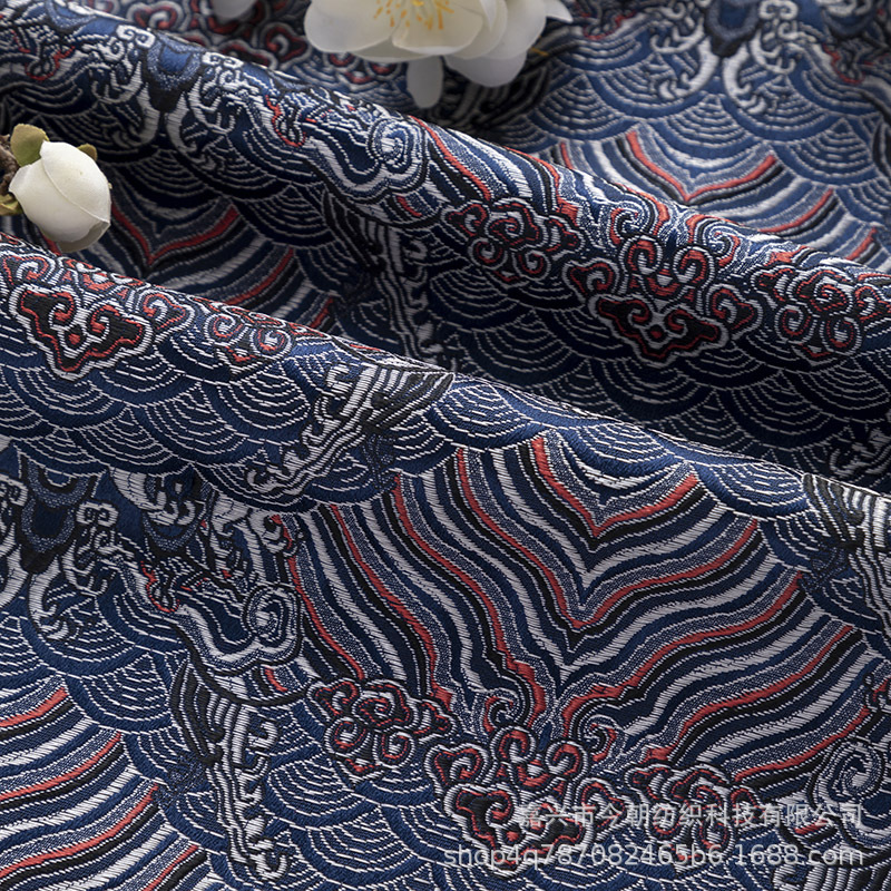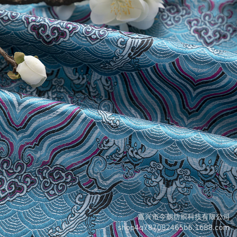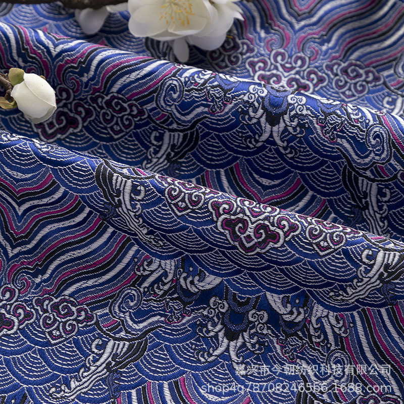 150 바다 파도 모조 브로케이드 원사 염색 자카드 원단 치파오 탕 세트 한푸 아동복 공예 포장 원단